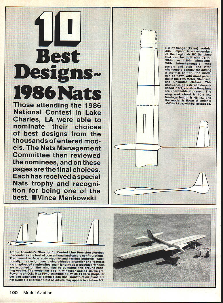 S-3 3w Leg can b 98-In WIth inte panels ana changeable thermal ar can flown tial Two UnlImita unlqueda lished unavalla wing root fucalage Icr model i of42to72oz 100 Model Aviation February 1987 101 r / /137jj 102 Model Aviation N I 1J