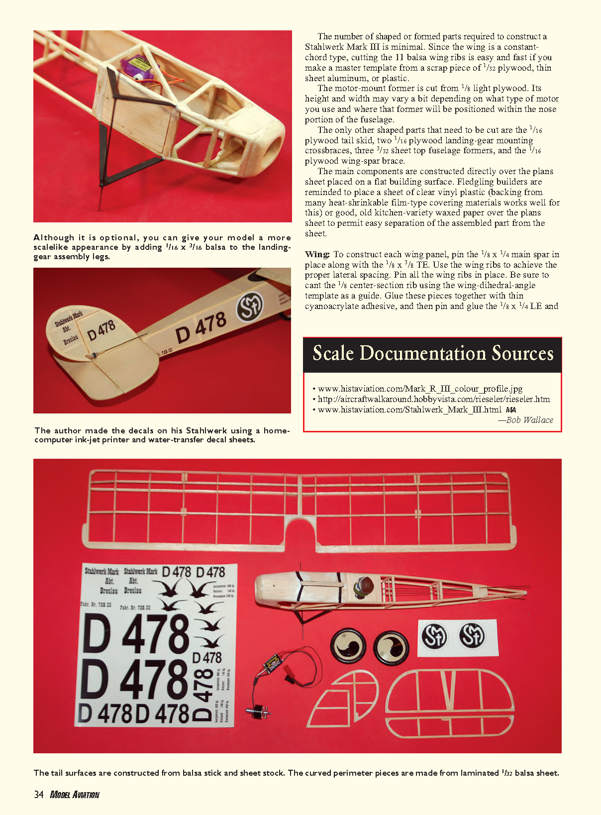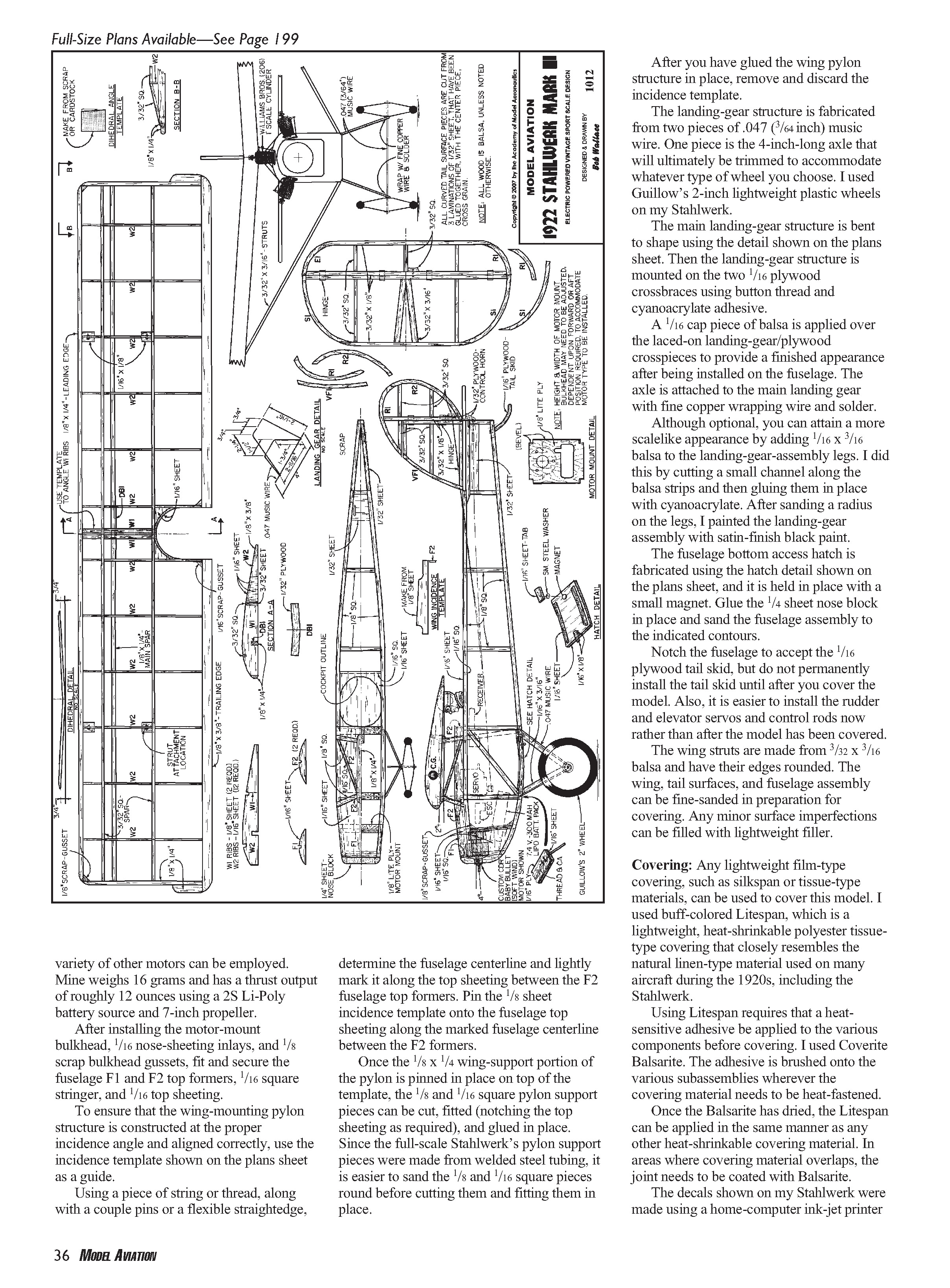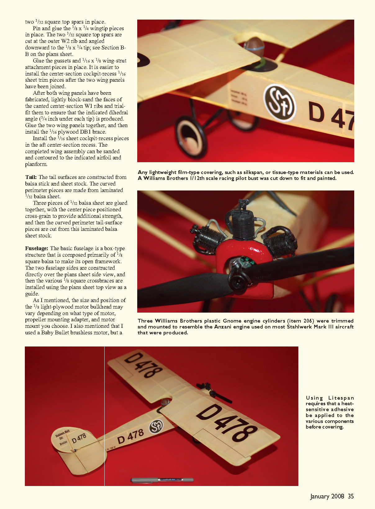 to build the wing support. Round all balsa parts before assembling the structure.