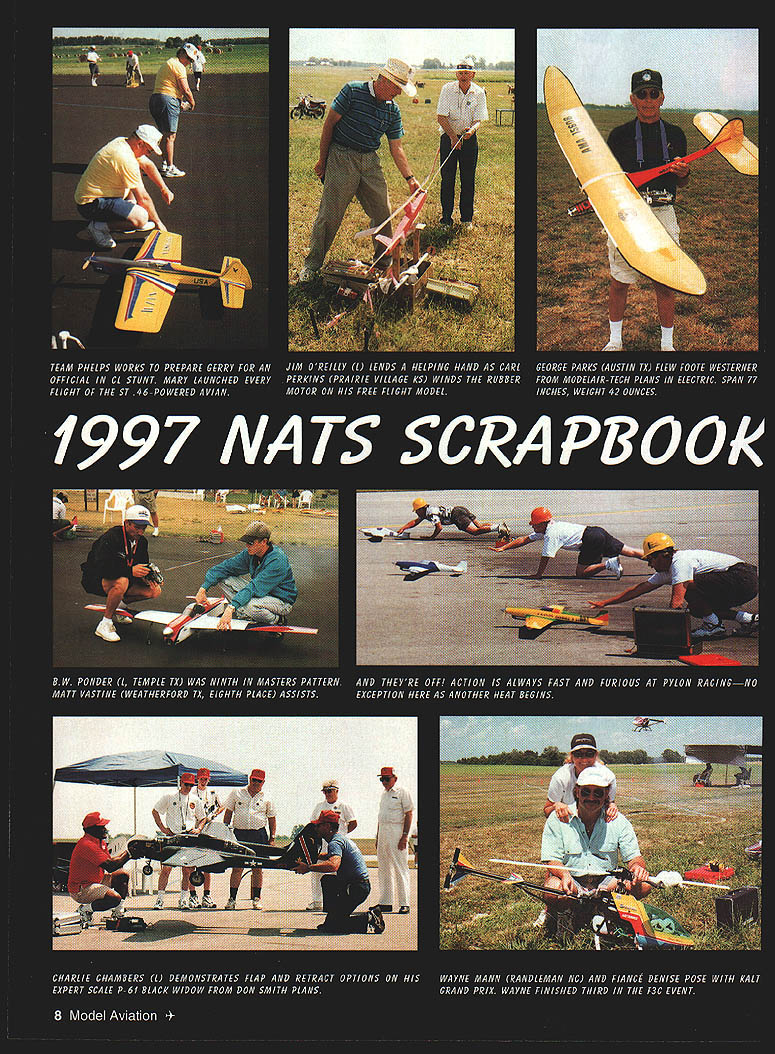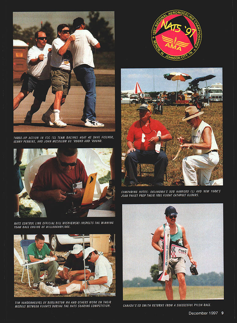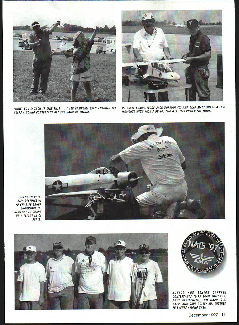 NO OCR TEXT NO OCR TEXT NO OCR TEXT READY TO ROLL AMA DISTRICT VI VP CHARLIE BAUER NORRIDGE IL GETS SET TO CRANK UP FLIGHT IN CL SCALE December 1997 11 NOW YOU LAUNCH IT LIKE THIS . CAMP8ELL SAN ANTONIO TX RC SCALE COMPETITORS JACK DORMAN L AND SKIP MAST SHARE FEW HELPS YOUNG CONTESTANT GET THE HANG OF THINGS MOMENTS WITH JACKS OV-IO TWO OS 32S POWER THE MODEL JUNIOR AND SENIOR CARRIER CONTESTANTS L-R EUAN EDMONDS ANDY WESTERHEIM TOM WARD DJ PARR AND DAVE ROLLEY JR ENTERED 15 EVENTS AMONG THEM AMA DISTRICT VII AVP SANDY FRANK ENTERTAINS THE VISITING TODD ULOSE L WACO TX AND OW PONDER WITH TODDS ASSOCIATION SURUGUES FRANCe AND OTHERS WITH TORNADO TALESPATTERN MODEL TODD FINISHED SIXTH IN F3A 12 Model Aviation E JUDGES CHECK DOCUMENTATION CAREFULLY DURING STATIC WAYNE YEAGER WAS ONE OF MANY NATS VOLUNTEERS WHO GAVE UP THEIR JUDGING AT THE HORIZON CENTER IN DOWNTOWN MUNCIE OWN FLYING TO HELP THE CONTEST GO SMOOTHLY THANKS 1 ROLAND SURUGUE OF FRANCE RENTED THIS RV SO SONS PASCAL AND OOPSI PETER J FERRAR VALLEY COTTAGE NY WAS SO INTENT ON GEORGES COULD COMPETE BOYS ARE PILOTS FATHER IS MECHANIC CHASING HIS AIRPLANE THAT HE DIDNT SEE THE DITCH