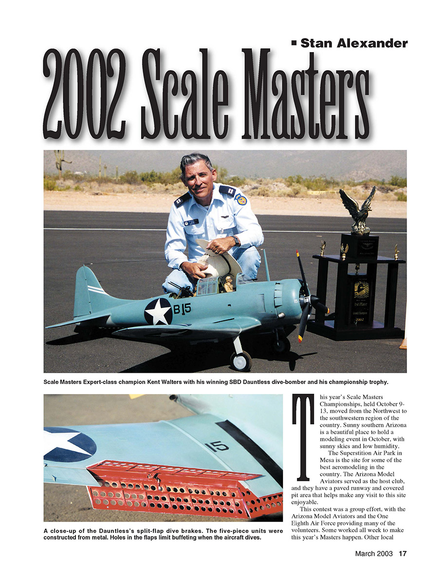 Scale Masters Expert-class champion Kent Walters with his winning SBD Dauntless dive-bomber and his championship trophy.