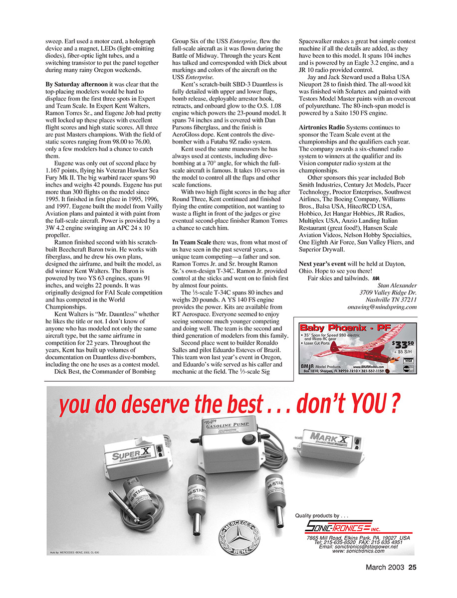 Mal Meador entered this 28-pound SBD-5 Dauntless, which was built from Jerry Bates