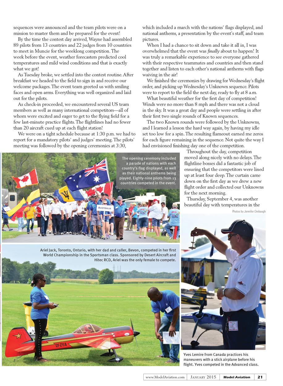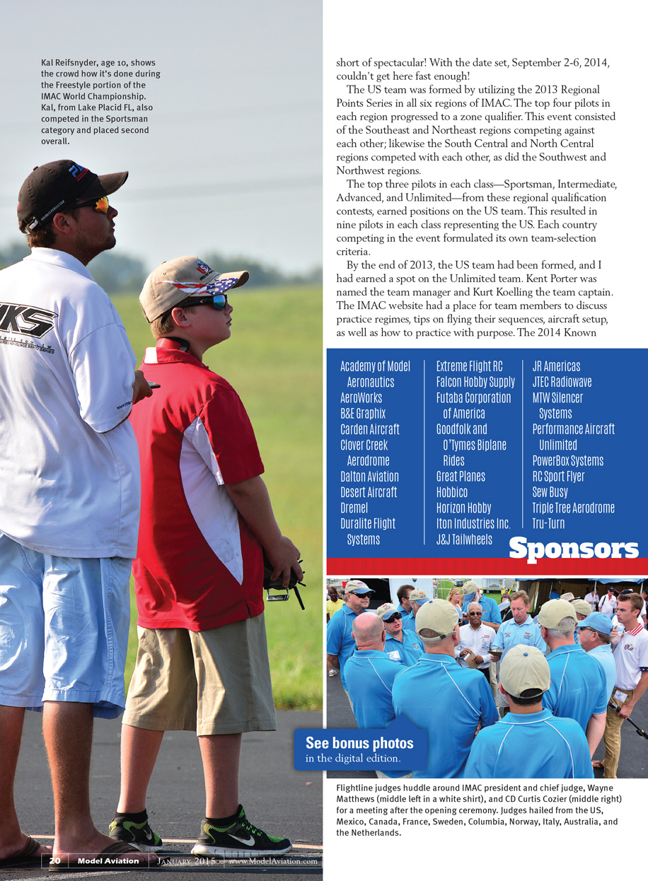 The top three pilots in each class—Sportsman, Intermediate, Advanced, and Unlimited—from these three qualification contests earned positions on the US team. This resulted in nine pilots in each class representing the USA. Each country competing in the event formulated its own team-selection criteria.