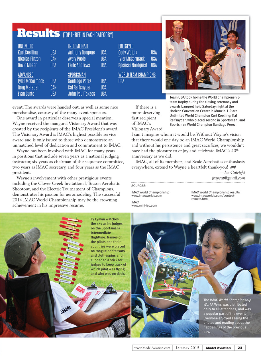 IMAC, all of its members, and Scale Aerobatics enthusiasts everywhere extend to Wayne a heartfelt thank you!
