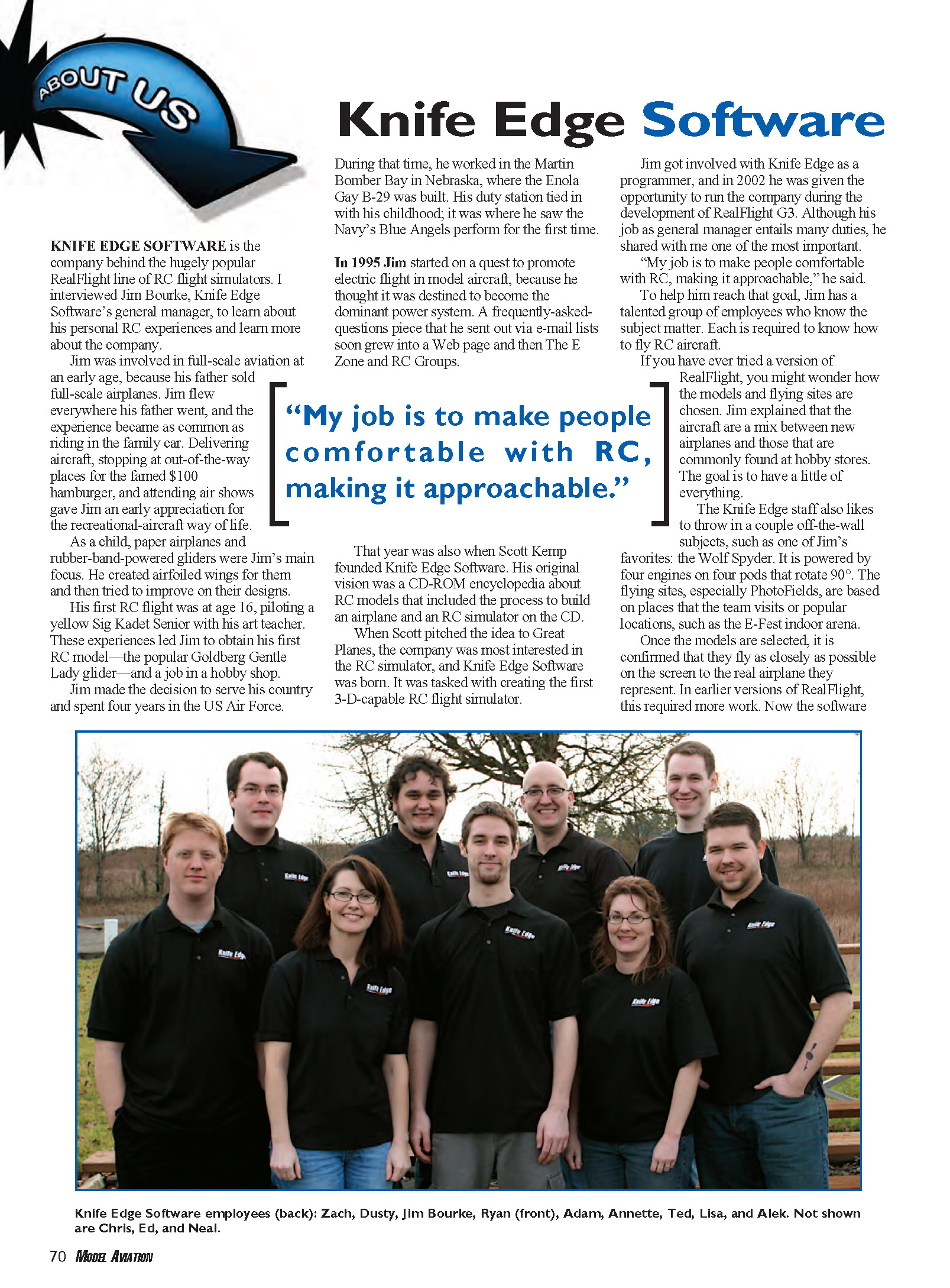 Knife Edge Software employees (back): Zach, Dusty, Jim Bourke, Ryan (front), Adam, Annette, Ted, Lisa, and Alek. Not shown