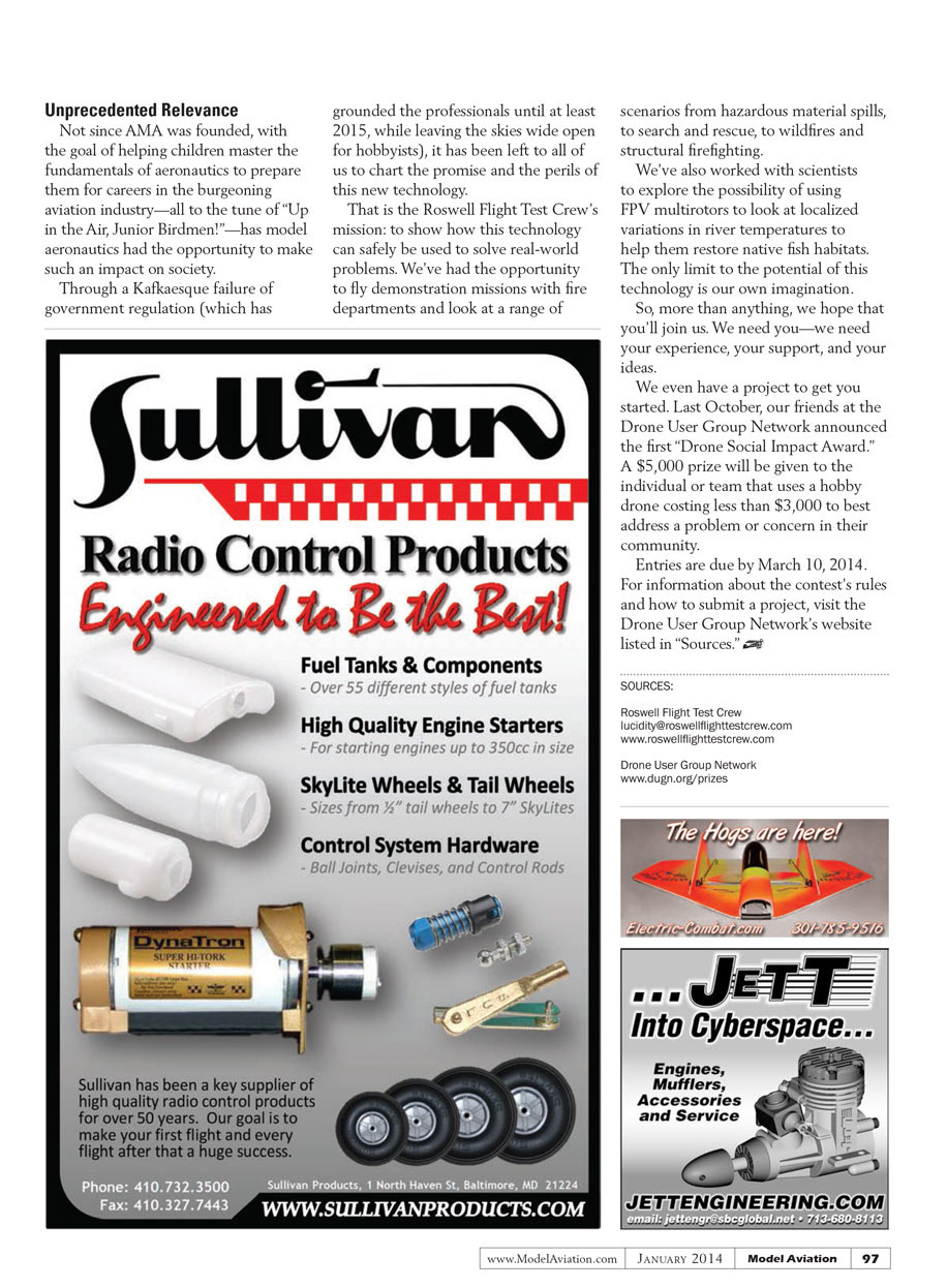 Not since the AMA was founded, with the goal of helping children master the fundamentals of aeronautics to prepare them for careers in the burgeoning aviation industry—all to the tune of “Up in the Air, Junior Birdmen!”—has model aeronautics had the opportunity to make such an impact on society.