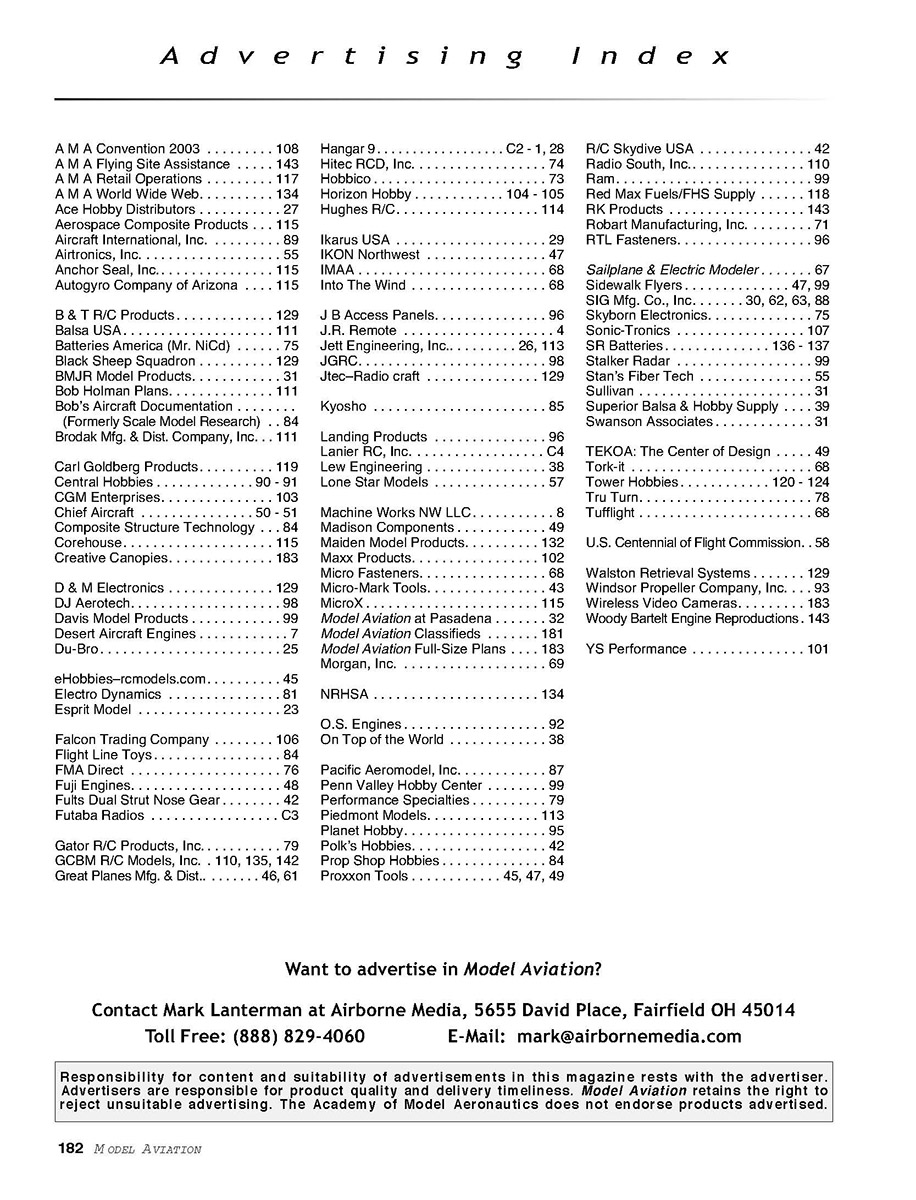 Advertisers are responsible for product quality and delivery timeliness. Model Aviation retains the right to