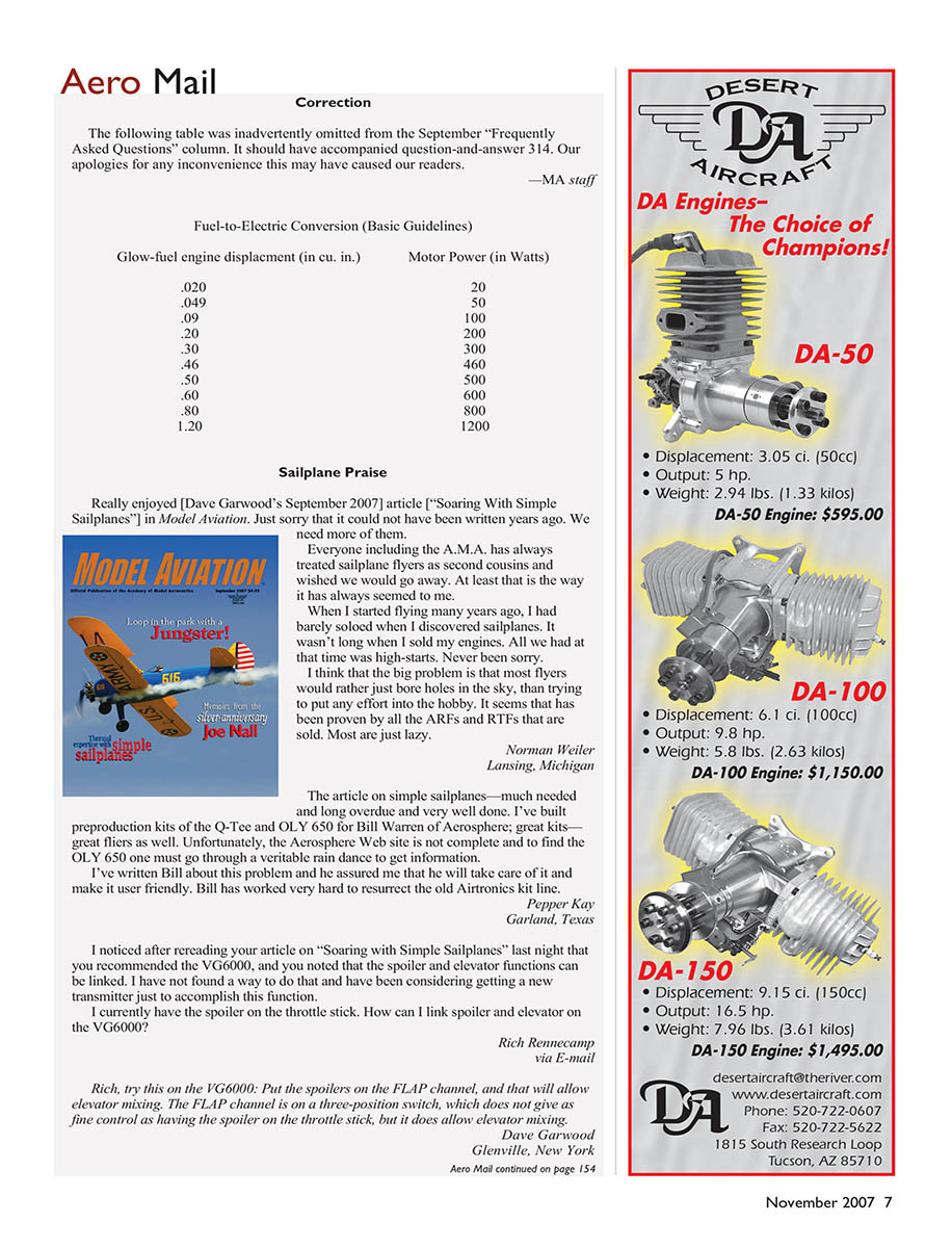 Really enjoyed [Dave Garwood’s September 2007] article [“Soaring With Simple