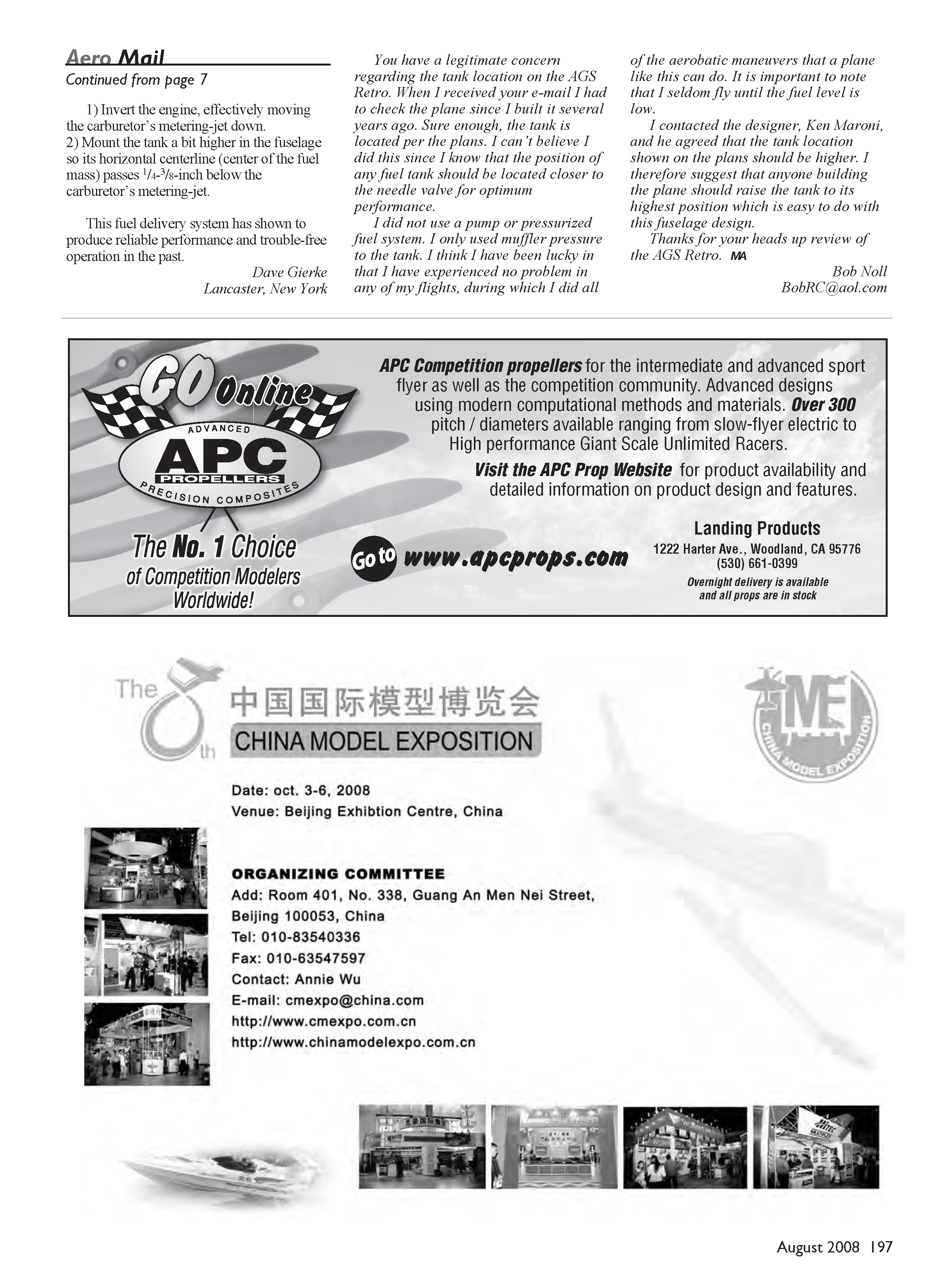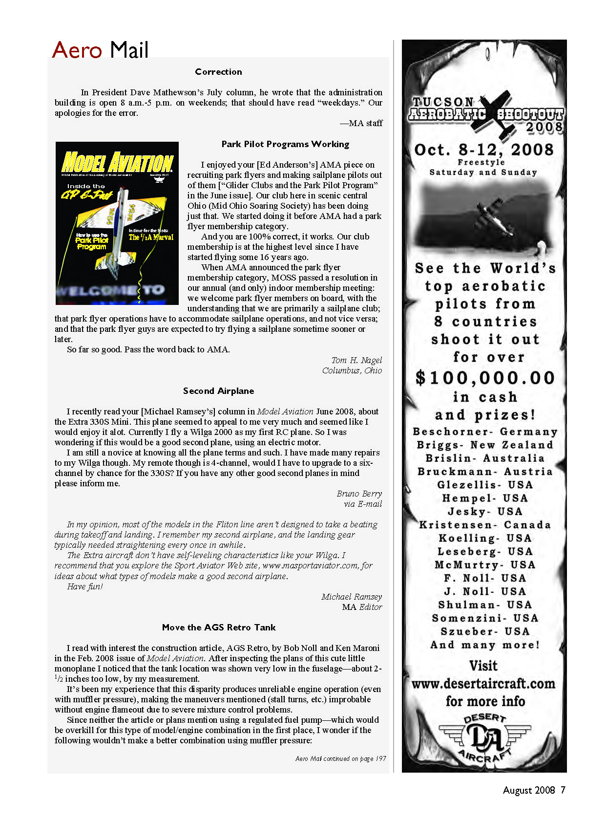 I recently read your [Michael Ramsey’s] column in Model Aviation June 2008, about