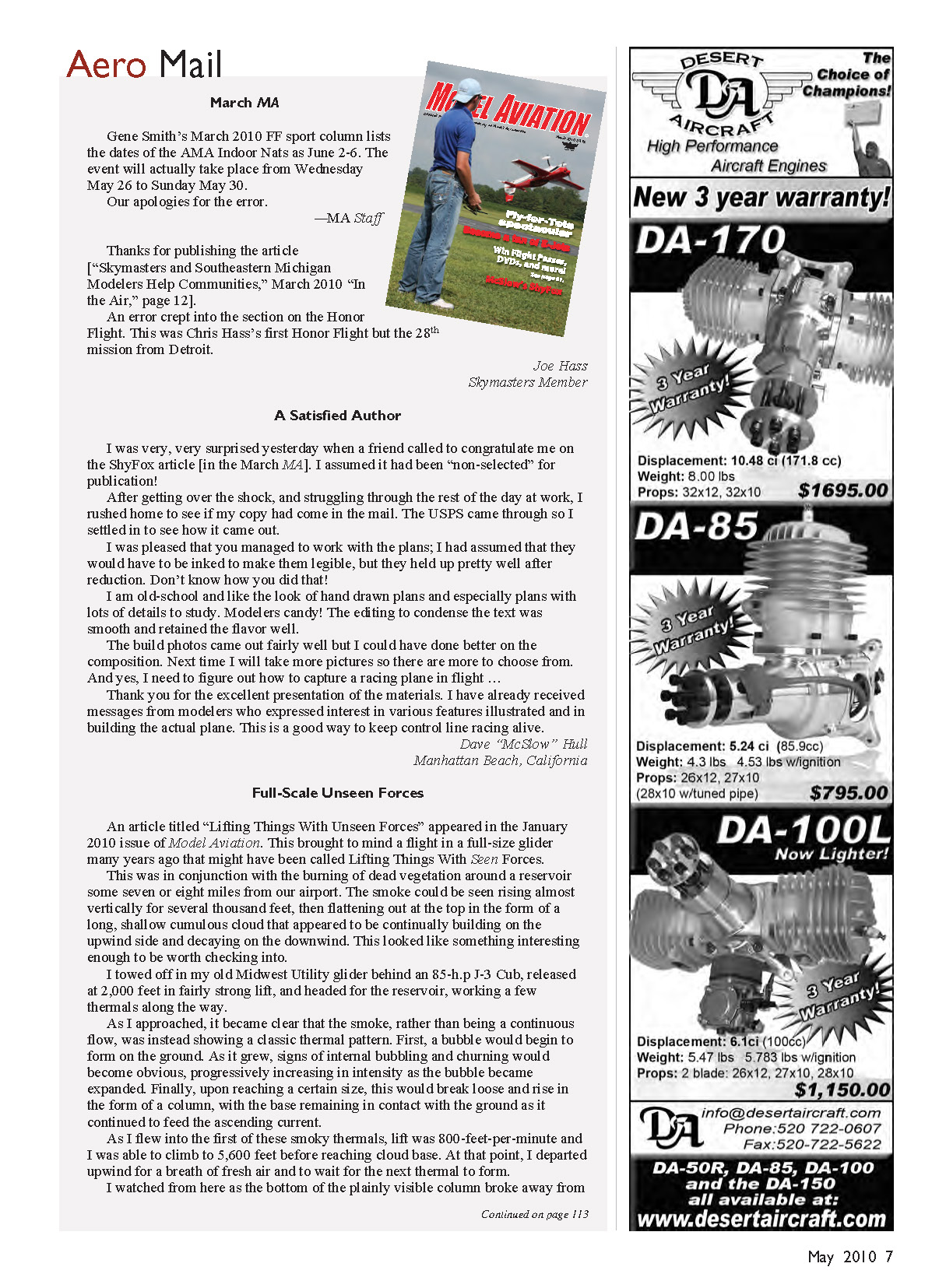 I do not find fault with Model Aviation and will continue to advertise in Model