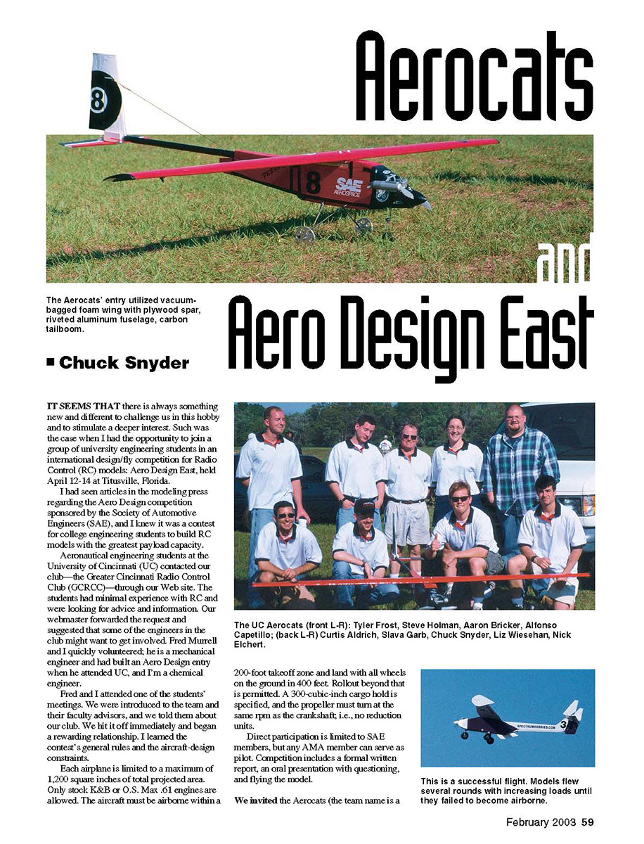 The UC Aerocats (front L-R): Tyler Frost, Steve Holman, Aaron Bricker, Alfonso