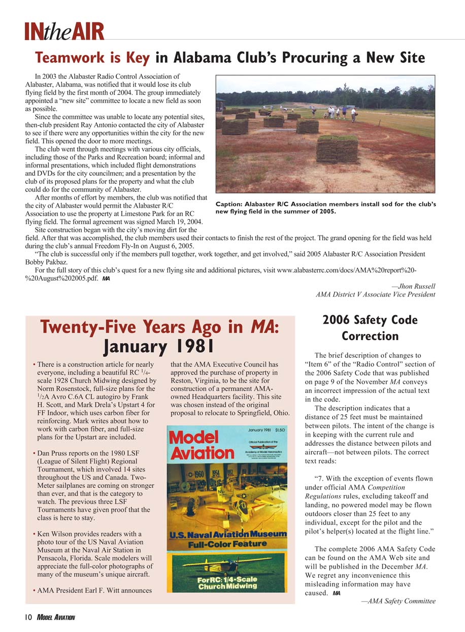 “The club is successful only if the members pull together, work together, and get involved,” said 2005 Alabaster R/C Association President
