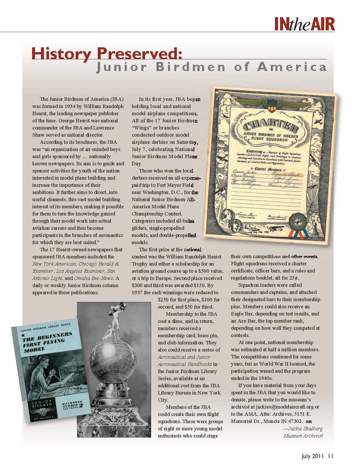 of Model Aeronautics to help create an award to recognize