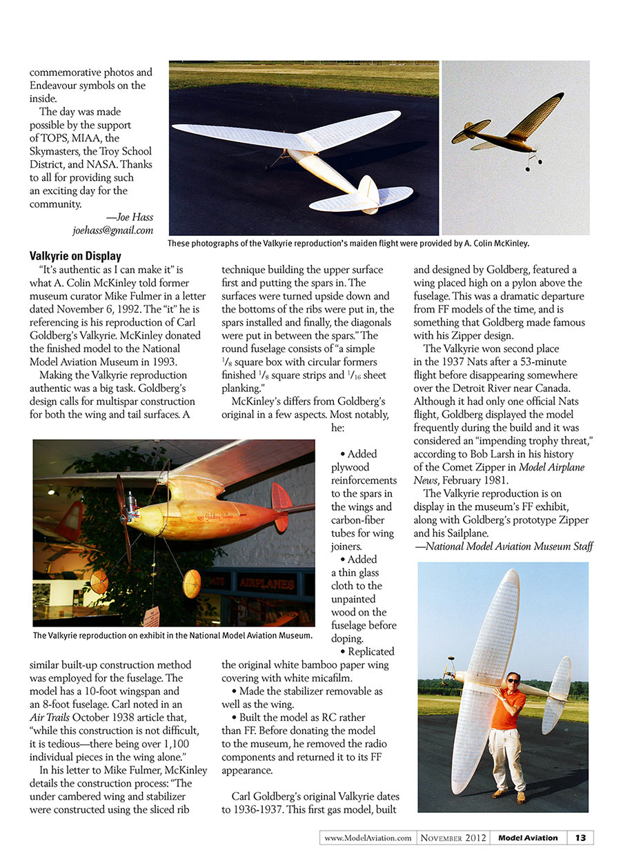 These photographs of the Valkyrie reproduction’s maiden flight were provided by A. Colin McKinley.