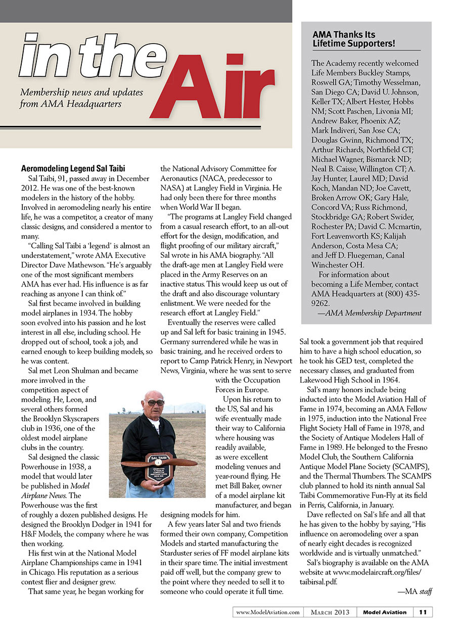 Aeromodeling Legend Sal Taibi