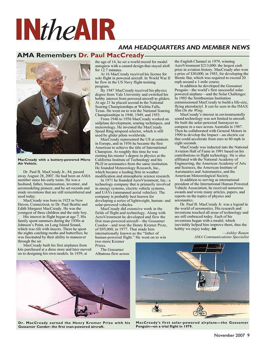 AMA Remembers Dr. Paul MacCready