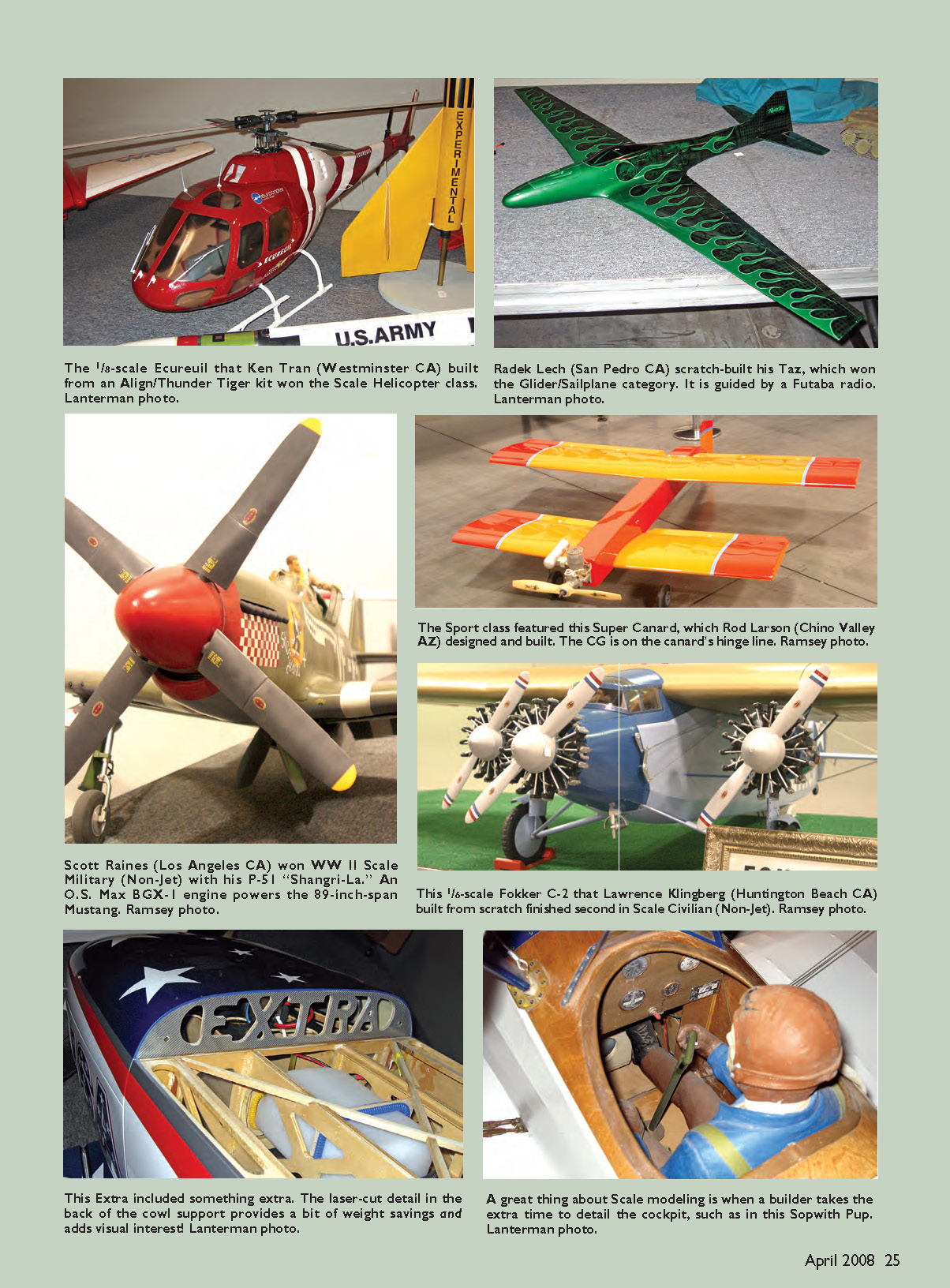 from an Align/Thunder Tiger kit won the Scale Helicopter class.