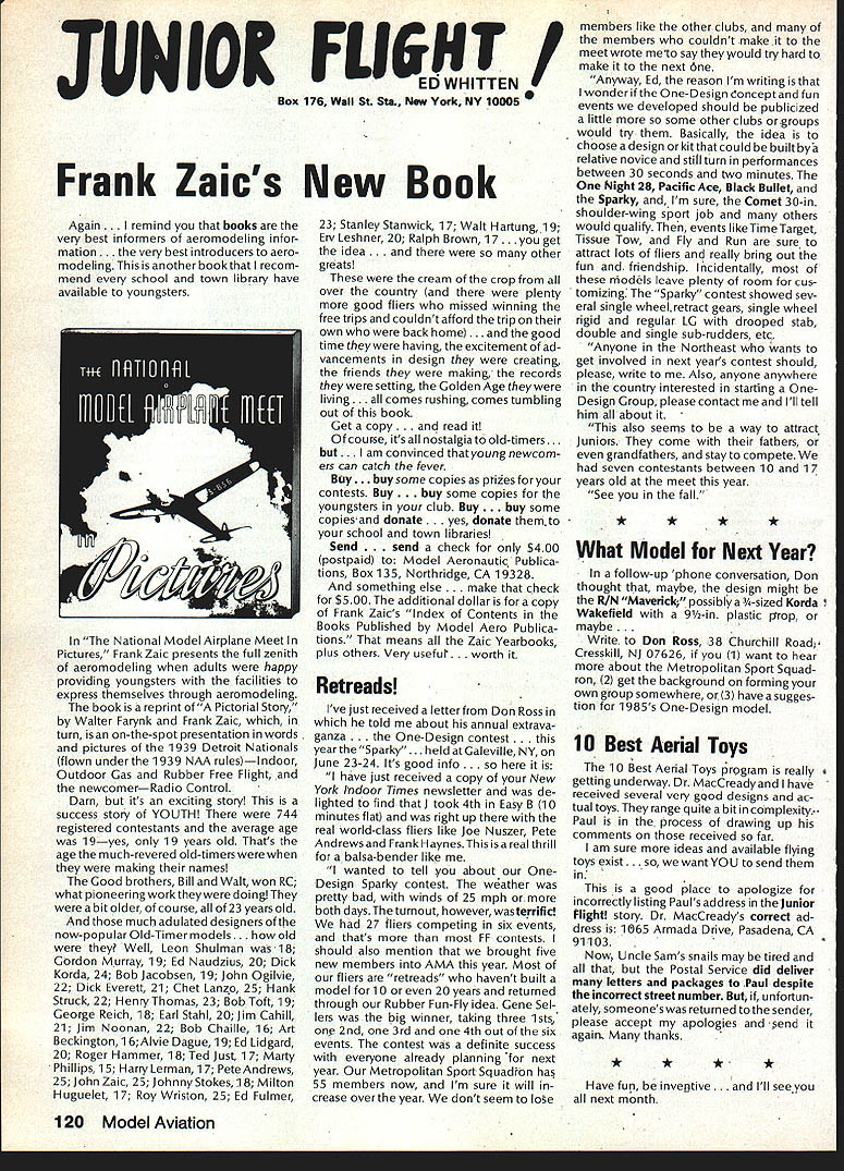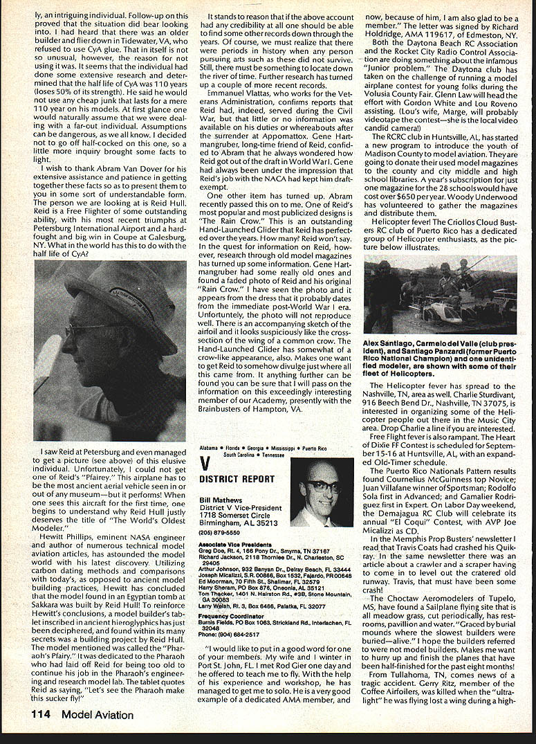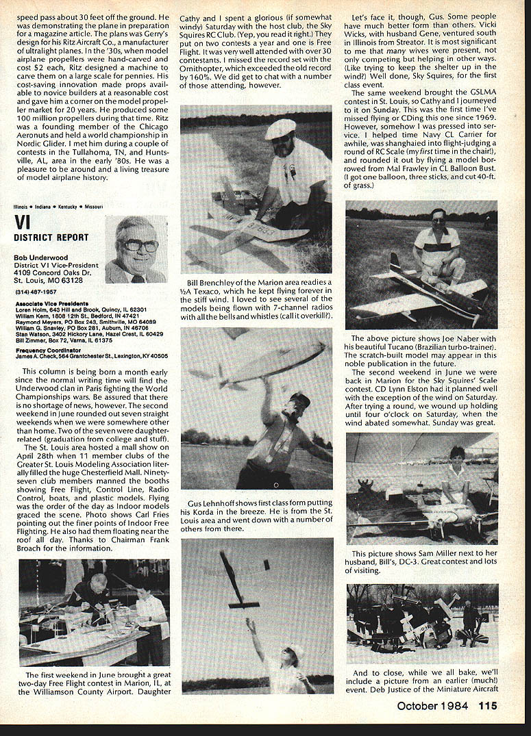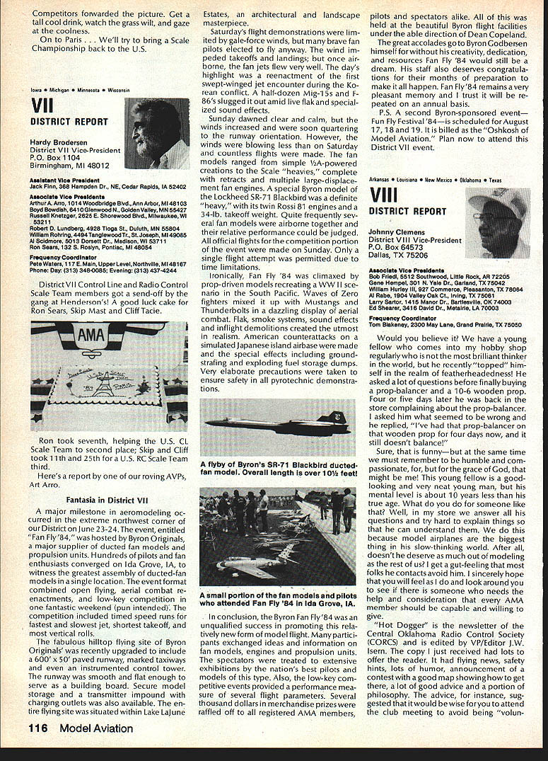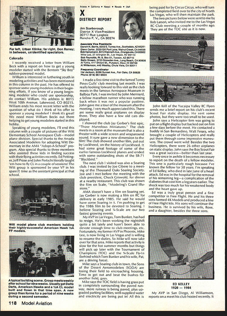 Earlier year followingOpen Letter received number AMA people asked official response entire membership could have benefit answers various questions noted letter response compo site thoughts severalAMA Executive Council members AMAs legal counsel AMA Executive Director others Three basic subjects interest future model aviation questioned Open Letter AMA response addresses particular subject insurance recommended reading members order better informed coverage provided AMA vs mis conceptions Open Letter OPEN LElTER ALL AMA MEMBERS OFFICERS AND STAFF Gentlemen am happy report Omahawks R/C Inc now has sufficient funds cover expected legal expenses involved defense Appeal Action being considered Supreme Court State Nebraska Noise Litigation will won lost through Omahawks efforts individual financial support modelers coast coast am no longer serving president Omahawks R/C Club nor speakforthat organization address fellow AMA members simply anotherAcademy mem berwho interested well-being proliferation hobby has enjoyed over 50 years Thirties built flew Rubber Gas Free Flight Forties Control Line added Since early Fifties RC has major interest initiated myfirst model club 1939 directed first AMA sanctioned meet 1946 throughout late Forties early Fifties organized directed AMA sanc tioned Plymouth International Elimination Meets held Omaha area Sixties Seventies continued assist promotion ourhobbythrough sanctioned Pattern Scale meets mall shows flying demonstrations course National MultiwingChampionships held annually through Seventies have three concerns feel major importance should addressed Omahawks Noise Clubs Insurance. Academy Academy ask give following questions thoughtful consideration find also concerned lets address problems attempt resolve NOISE Has AMA past really come grips noise problem Are fact too noisy Has AMA court through official negotiation ever saved flying site Most importantly now firm policy established will allow another flying site lostwithout organized national effort stand firm protect collective interests rights CHARTERING IstheAMAan organization modelers modelers fact organization chartered clubs dedicated building ever larger national entity Char tered clubs great financial value Academy Academy certainly value chartered clubs must AMA member join chartered club orderto recognized loyal member Academy share full benefits membership Must club char tered orderfor considered asset hobby forthe Academyto survive INSURANCE ourcurrent insurance pro gram conceived Alexander & Alexan der worth premium much protec tion really have considering multitude requirements involved fact policy $1 00000 deductible further fact reserve account $1 00000 has set aside protec tion membership theirlandlords What claims have paid past Has single noise suit ever defended What protection exists strictly injunc tive action no monetary demands made Very sincerely 0 L Olson Jr AMA #9529 Dear Mr 0 Olson Jr Re Response An Open Letter January 29 1983 AMA Executive Council heard person explanation suit filed against Omahawks R/C Club alleged noise pollution Council sympathetic clubs plight members Council felt could support cause individuals due fact Omahawks still chartered AMA asked keep Council apprised situation developed meantime moved passed Council go record giving total moral support Omahawks given such additional support might recommen ded insurance company legal counsel motion reported May 1983 issue Model Aviation page 102 Further updates plight Oma hawks reported Model Aviation magazine June July 1983 March 1984 issues June 1983 issue page 105 stated Oma hawks have legal defense fund asking donations anyone interested helping article stated AMA would collect forward checks made out Omahawks R/C Club Inc help fund drive John Worths letter April 27 1983 addressed restated moral support expressed Executive Council based advice AMAs insurance broker legal counsel Both advisors expressed view AMA should monitor legal proceedings closely out becoming party litigation Re spect positions both Omahawks AMA-affiliated clubs suggested thatAMA intrude defense Oma hawks position ably advanced clubs local counsel General Counsel however offered review documents case past come Furthermore attorneys office indicated willingness provide direct consultation Omaha clubs attorney desired Meanwhile have offered documentation statistics etc files might support Oma hawks case letter February 17 1984 addressed Omahawks attorney General Counsel requested him re view potential AMAs support Omahawks R/C Clubs position before Supreme Court perhaps filing amicus curiae friend court brief otherform support additionally requested supplied copies relevant decisions District Court matter pleadings filed Supreme Court Continued page 109 October1984 105 AMA HQ bY Executive Director including reports AMA President Executive VP Vice-Presidents AMA HO SERvICES STAFF 0O 0 Executive Director John Worth 0 Asaistent Executive Director vince Mankowaki 0 Executive Secretary Joyce HagerO Comptroller Gisele Jackson 0 Competition Services Director Micheline Madison 0 Special Services Director carl MaronayO Membership Director carol MerfeldO Public Relations Director Geoff StylesO Special Events Manager Douglas Pratt0 Publications Director carl WhealeyO Administrative Coordinator Bob \toislaveko 0 0 General Counsel Jeremiah Courtney Presidents Corner President ACADEMY OF MODEL AERONAUTICS JOHN C GRIGG 6387 Badger DriveHome 716 434-3955 Lockport NY 14094Work 716 631-6314 following report trip Peoples Republic China friendly model corn petition exchange model ing skills Mostly will discuss sight seeing portions trip Clarence Haught will undoubtedly cover competition much detail article Look report elsewhere issue well could have titled Fantastic Voyage trip will surely last minds team oncein-a-lifetime experience team included Lee Hines Wayne Drake FlA George Schroedter Bob White F2A Bob Sifleet Clarence Haught F2C CC Johnson FF team 