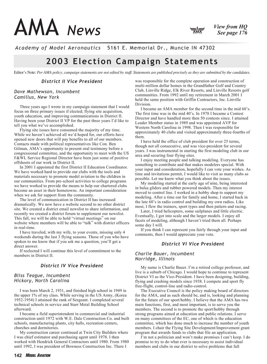 election. I have been an AMA member since 1957 (Life Member