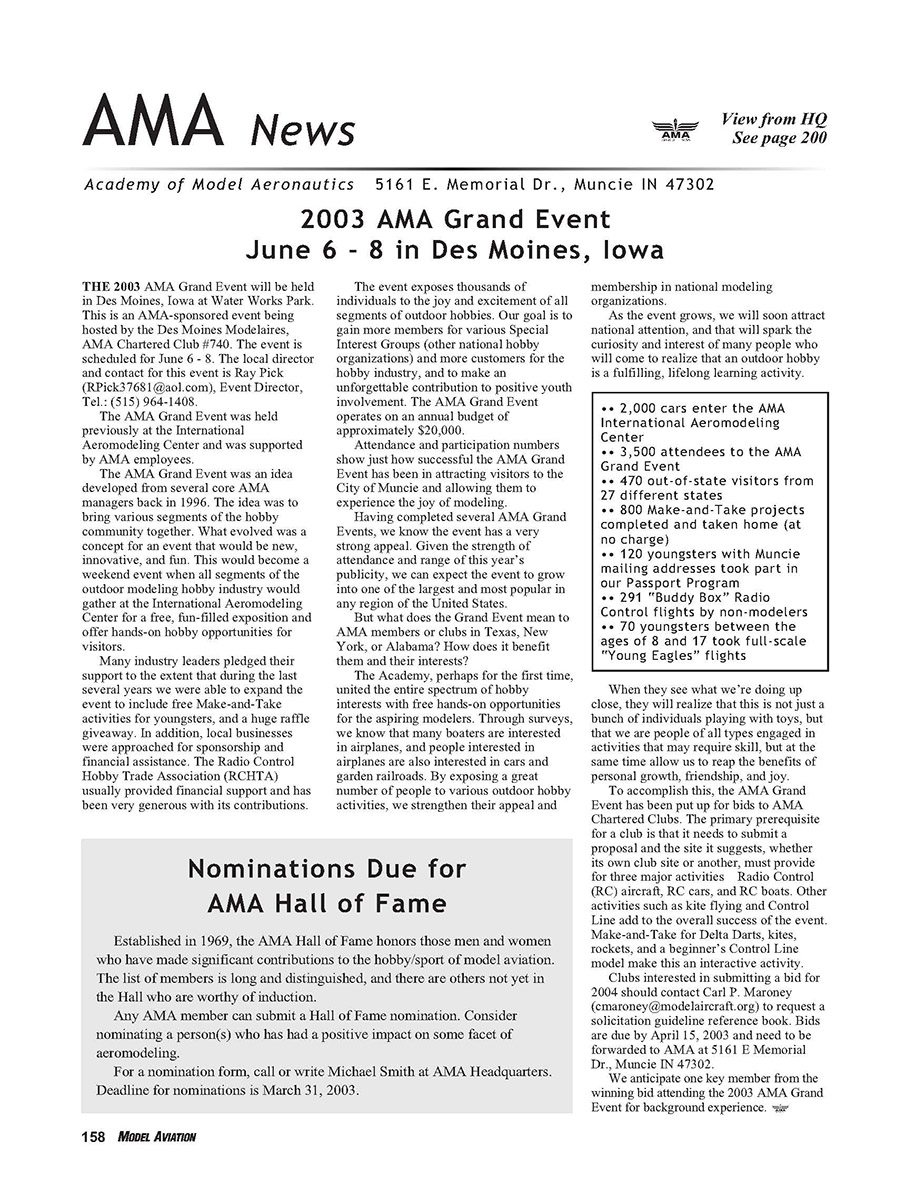 Academy of Model Aeronautics 5161 E. Memorial Dr., Muncie IN 47302