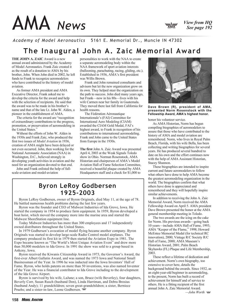 of Model Aeronautics. Frank Zaic created it