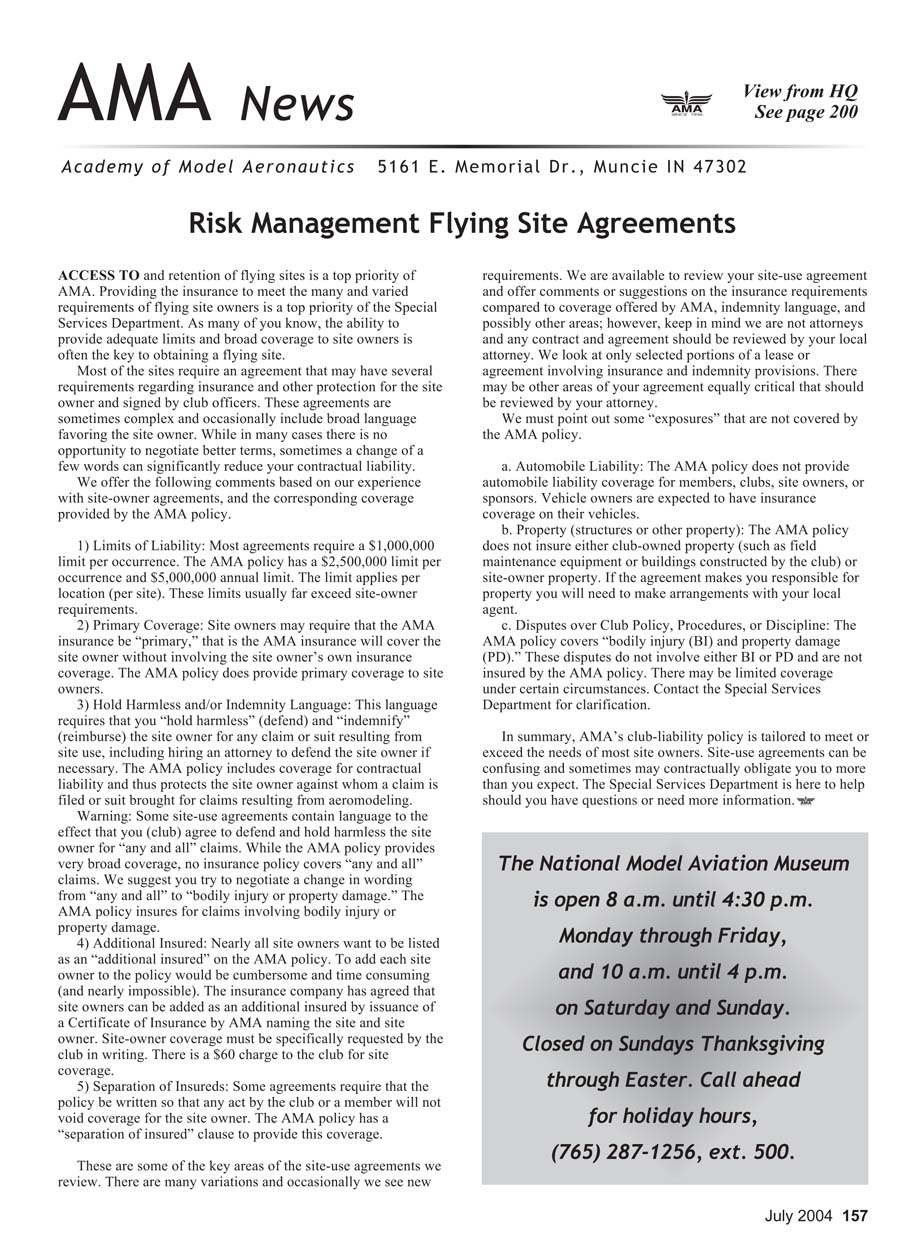 Risk Management Flying Site Agreements