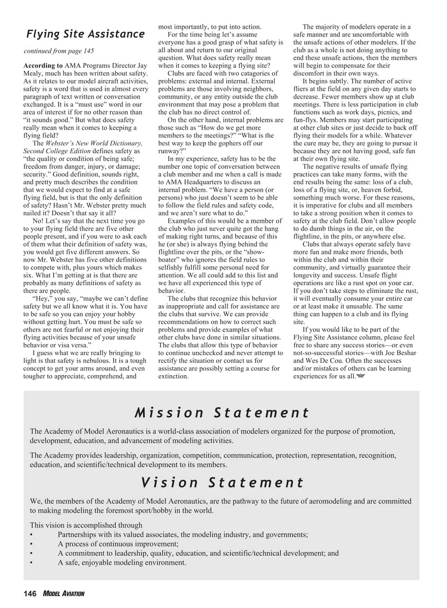 The Academy of Model Aeronautics is a world-class association of modelers organized for the purpose of promotion,