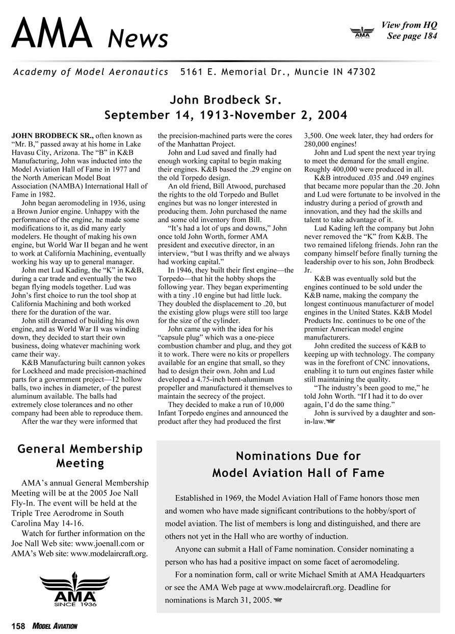 or see the AMA Web page at www.modelaircraft.org. Deadline for