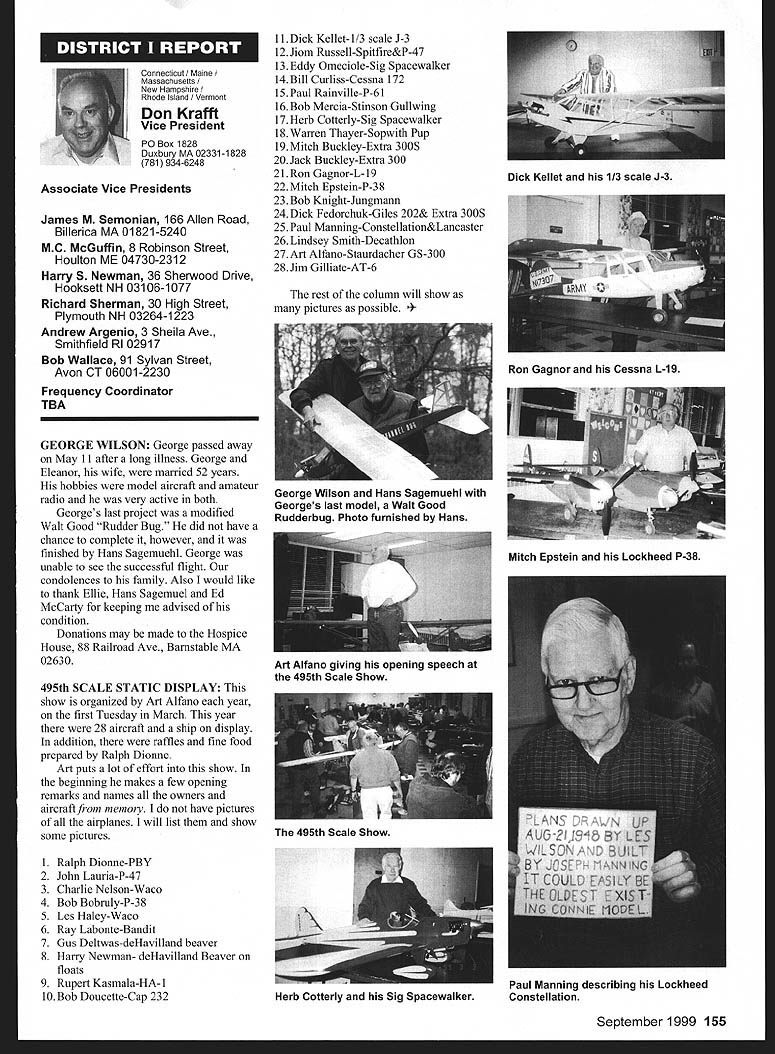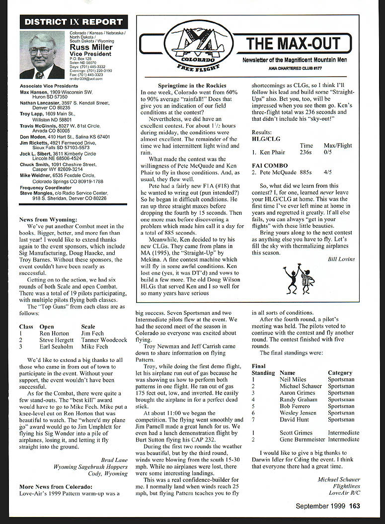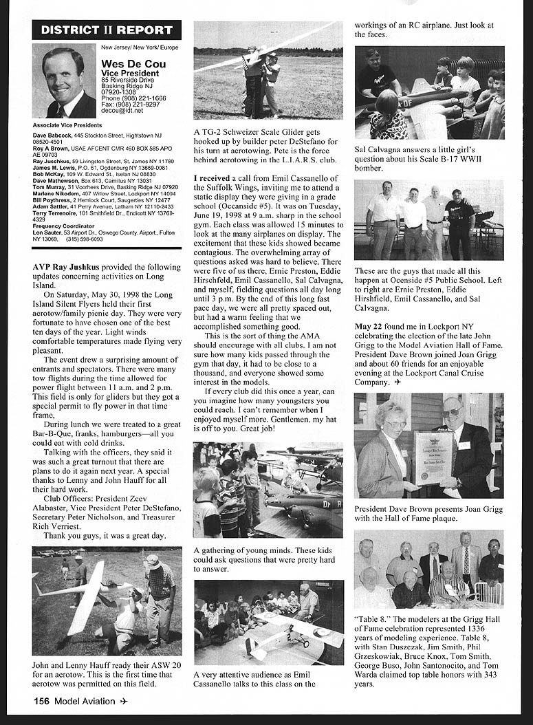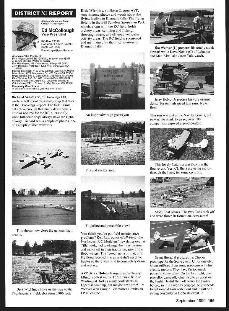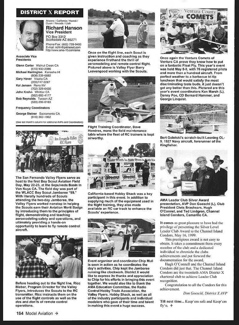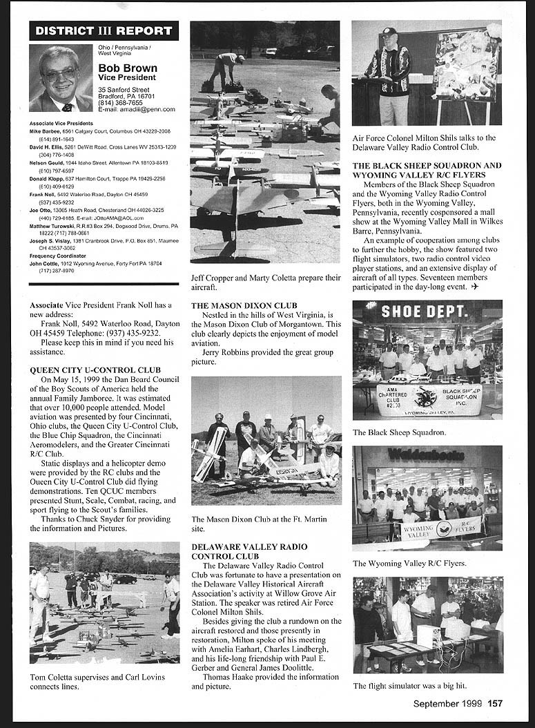 Mews View HQ Seepage 192 Academy Model Aeronautics 5151 East Memorial Drive Muncie IN 47302 E11 it1 miem Joe Beshar Coordinator 198 Merritt Dr Oradell NJ 07649 Fax 201 261-0223 Tel 201 261-1281 FindingPreservingMaintaining Don Ross registered FSA volunteer reports practicing persistence gets flying site Further cites ambitious program future too can join team FSA volunteers See end column Teaneck Armory Story first contacted Teaneck Armory folks May 1992 armory Teaneck New Jersey potentially best indoor sites greater New York area About five miles George Washington bridge seemed like swell place approach proposal has ample parking 100 cars within few feet door wellsupplied rest rooms good lighting breeze-free heating armory floor 100 x 60 yards stands extending another 10-25 yards side roof over 55 feet high steel beams starting about 45 feet Hanging lights create mild tolerable hazard time told armory built decades ago suitable public use could modified considerable cost 1996 after severe snowstorm destroyed part roof reconstruction made place accessible public made proposal September 1996 Model Airplane School based armory proposal favorably considered military folks passed Trenton state controls armories Thats found out states prime interest rent armory properties sports arenas movie sound stages other commercial use would bring revenue best rates could get non-profit organization under auspices AMA still over $700 per day plus $29 per hour armorer charge continued try work something could jeopardize use armory out until late 1997 time opolitan Sport Squadron holds armory already rented rockthe sanction insurance Teaneck star rehearsal theater movieArmory inquiries should go through company sound stage Joe Beshar hadme address listed blow Indoor following efforts copiesflyers greater New York area owe correspondence proposalsbig vote thanks Joe Beshar soccer group made arrangementstireless efforts use armory throughout winter contact several 1998 running four games aCivil Air Patrol groups area time seven days week gave up theregularly meet armories effort because couldnt see wegoing try work out combined could compete deep pocketsModeling 101 cadets thus users asked could simplystrengthen ties state come fly few hours onarmory managers weekday mornings facility wasnt being used Soccer doesnt start Ross 38 Churchill Road Cresskill weekdays until 300 am ew Jersey 07626 E-mail never gave up would stop lywords@aolcom few days model hand offer fly show what wanted toRegister FSA Volunteer Flying eventually got both Trenton andSite Assistance Program consists Chief Armorer agree thenetwork volunteers serve renters would let us would foregoAMAs eyes ears charges nteers read newspapers appointed individual Fieldlisten watch news programs Marshals Wednesday startedaware activities could impact flying late January 1999 first thean existing potential flying site floor divided netting four matter collecting courts about 75 x 150 feet got theinformation regarding flying sites folks charge allow us slide backadvising local modelers AMA clubs nets opening floor 150 xthe area passing AMA 150 feetFlying Site Assistance Coordinator So far weve some wonderful ambitious program service flying site have decided veryto fellow modelers Anyone closely supervise models flyers tointerested contact address make sure avoid problems thatabove ember 1999 153 EC Meeting Minutes Available complete copy approved minutes quarterly Executive Council meeting available AMA member request copy most-recently approved minutes will provided no charge Council meets quarterly minutes given meeting approved following meeting Additional copies minutes other meetings $5 shipping handling charge Requests may submitted AMA Administration telephone via fax writing telephone requests dial 765 287-1256 extension 201 210 fax requests use 765 741-0057 $10 minimum credit card orders -9t 4O4IiITT~A ejgU Doug Holland AMA Executive VP 3517 Fernwood Dr Raleigh NC 27612 Home 919 787-5163 Office 919 787-7454 Joyce Hagar AMAs Executive Director circulated following statement Executive Council believe says lot about AMA Within last two months have contacted British Model Flying Associations General Secretary Graham Lynn well representative Model Aeronautics Association Canada organizations planning purchase permanent flying site very interested facility Muncie gentlemen England actually brought family Muncie toured AMA facility have provided much input both organizations think impressive being used role model Following Statements Cash Flows shows incoming outgoing funds AMA during 1998 1997 THE ACADEMY OF MODEL AERONAUTICS INC STATEMENTS OF CASH FLOWS YEARS ENDED DECEMBER 31 1998 AND 1997 OPERATING ACTIVITIES Increase net assets Adjustments reconcile increase net assets net cash provided operating activities Depreciation amortization Unrealized gain investments Gain loss sales assets Changes operating assets liabilities Receivables Inventory cost Prepaid expenses taxes Accounts payable accrued expenses Competition funds escrow Deferred membership revenue Deferred IMS revenue Net Cash Provided Operating Activities INVESTING ACTIVITIES Purchase Infemational Modelers Show Purchases property equipment Proceeds sales assets Deposits investment accounts___________ Net Cash Used Investing Activities__________ FINANCING ACTIVITIES Principal payments mortgage payable Principal payments capital lease obligations Collections mortgage note receivable Net Cash Used Financing Activities NET INCREASE IN CASH AND CASH EQUIVALENTS 1998 $ 980210 414605 227489 1176087 82188 50728 2674 30191 15848 127277 jit7 100000 306904 5296 128977 530585 51387 24967 ilZ49 526403 CASH AND CASH EQUIVALENTS Beginning year End year SUPPLEMENTAL CASH FLOW INFORMATION Interest paid Income taxes paid SUPPLEMENTAL DISCLOSURE OF NON-CASH INVESTING AND FINANCING ACTIVITIES Equipment financed through capital lease obligations $ 80929 3686 33082622 579332 $83173 2015 74302 will leave humo