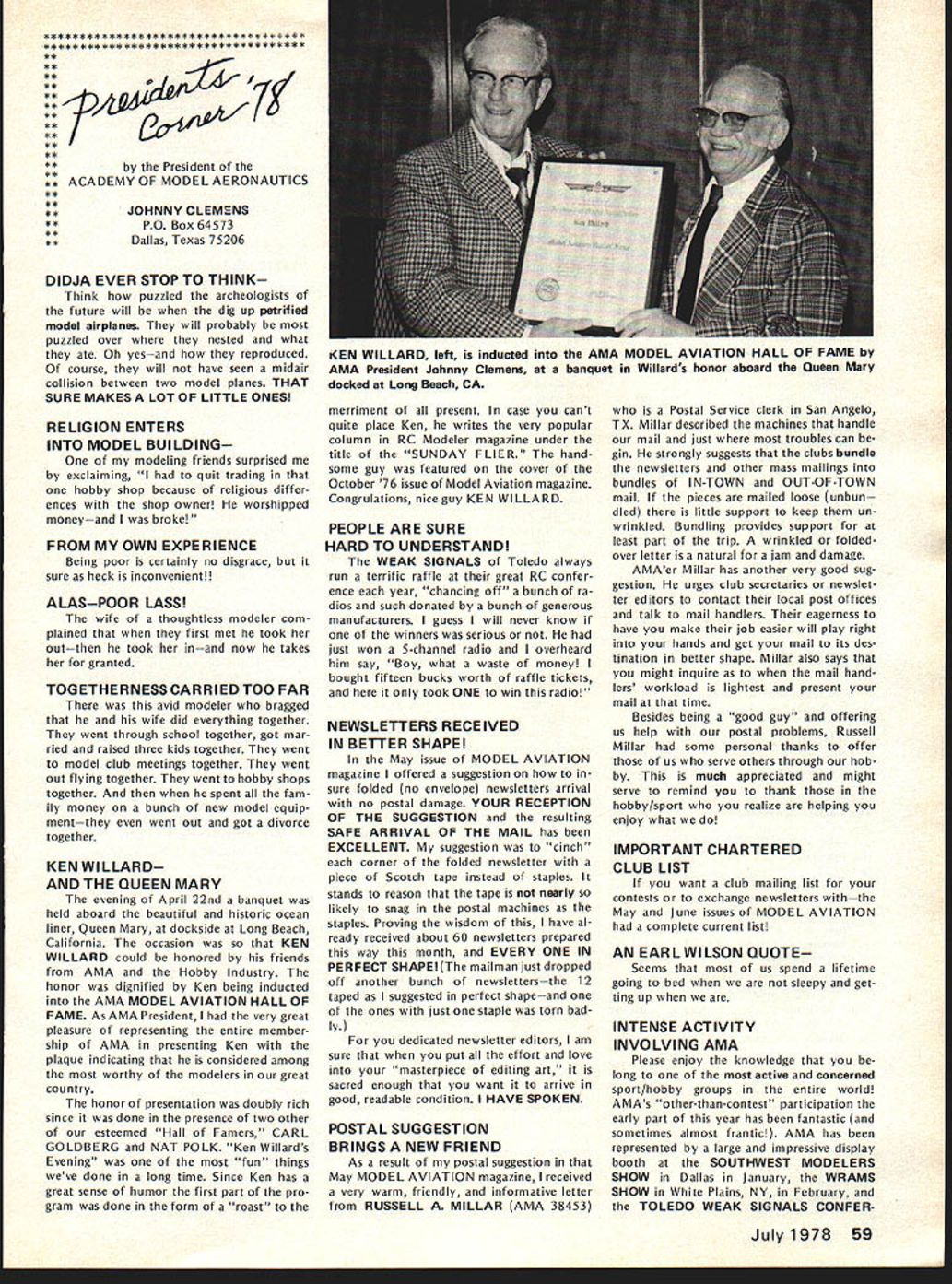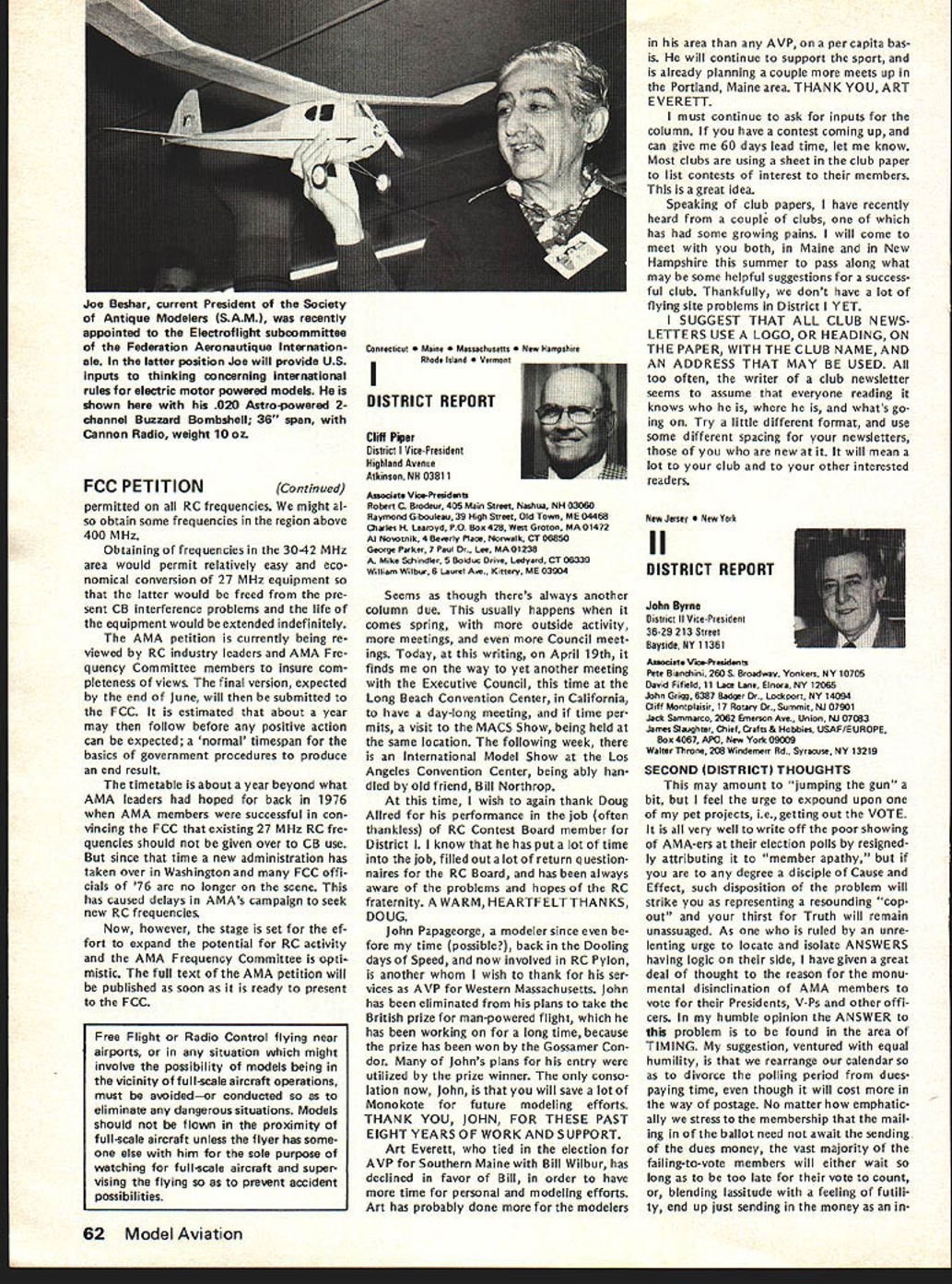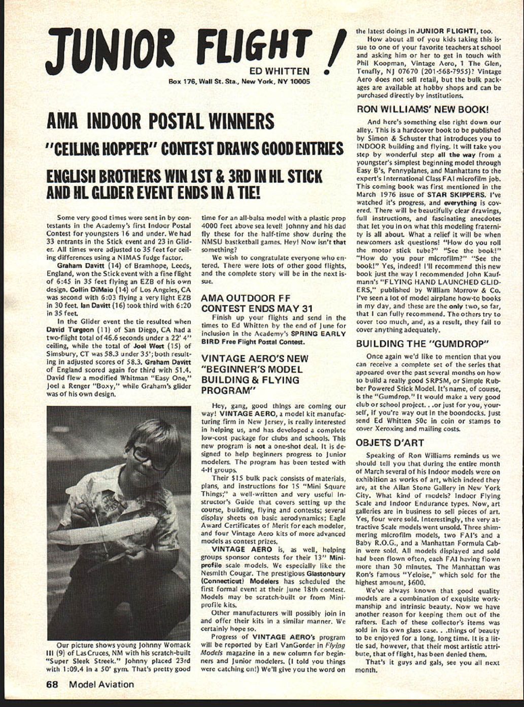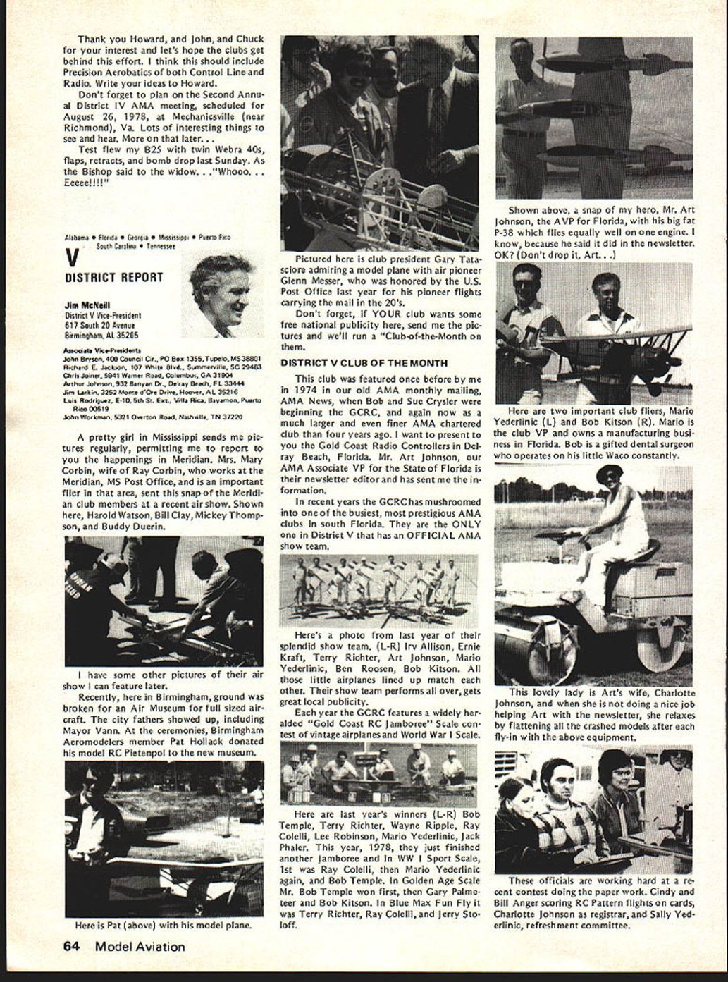 AIR SHOW TEAM STATUS REPORT Now barely year old AMA Air Show Team program boasts total 20 teams coming 1978 flying season 20 teams represent some 205 AMA members nine districts 13 states 12 active teams 1977 responsible promoting model aviation general public across country presenting over 232 performances before thousands pleased spectators sides educational informative flying dem onstrations original routines created volving highly skilled well-choreographed aerial ground acts elaborate sound costuming cases Besides hours practice build ing some Show Teams constantly working new ideas different types aircraft new acts entertain audiences sure mental telepathy two Show Teams have come up flying Big Macthe first designed Kelly Eberle Flying Dutchmen Aero Team Control Line International Toy Show Philadelphia last September second designed built Bob Roach Spirit America Air Show Team Radio Control 24th Annual Toledo Exposition Building flying beginnings Air Show Teams interest spacious new shopping malls now welcome team static displays teams averaged two five sta tic shows month thus giving good exposure creating interest aeromodeling during long non-flying winter During static display STARS Air Show Team North Star Mall San Antonio Texas random samplings interviews indicated over 25000 people visited various dis plays merchants mall indicated sharp rise modeling-related sales di rect result show Thats least ASTs effortsamong other rewards requests air shows mayor Lytle Texas Chamber Commerce representative Castroville Texas RC Club representative Tampico Mexico hobby shop owner Austin Texas representative Piper Aircrafts Agricul tural Division Its plain see interest model aviation Texas growing Air Show Teams help generous industry sponsors hold full pro grammed flying shows demonstrations mod el building classes lectures static shows interviews television radio model aeronautics promoted general newspapers cover ing events detail type equipment used kinds equipment needed build models future picture 50 show teams across country promoting model aviation new concept Academy has al ready received over 70 requests become AMA/H IA Air Show Teams Although qualifi cation requires great deal skill profession alism promotional ability hopes high ASTs will quadruple number per formance 78 Meanwhile following merely sam pling type response show teams have received date aeromodelers program helps publi cize hobby has brought great recrea tional enjoyment young old alike source great optimism view quickening pace American life esentative Gus Yatron Pennsylvania Congressional Record Model aviation much ticipated have provided us group men can work closely com ing events John Parker Chapter President American Business Clubs Reading Pennsylvania can assured future new members hobby will come out ranks because show J Davis President Reading Jaycees Inc Reading Pennsylvania next page Crowds what AMA Air Show Team Program aboutgives general public chance witness first-hand excitement chal lenge air-modeling mixture specialty aircraft such flying doghouse flying lawnmower flying flag plus scale conventional models makes well-rounded shows Picture exhibition put Florida Air Show Team AMA HQ Executive Director including reports AMA President end Vice-Presidents L ACADEMY OF MODEL AERONAUTICS Fifteenth Street NW Washington DC 20005 have undoubtedly stimulated terest hobby us T M Bermingham Pony Federation Chief Y Indian Guides Camden County New Jersey people attendance enjoyed show youngsters asked contact reference joining model club Sam Protto Chairman Twp Spring Festival Committee Reading Pennsylvania Never before have met people went out way help us Judith Dolan Field Producer KidsWorld Productions Miami Florida demonstration both entertain ing informative sure en joyed comments di rected us Jeanann Skoraszewski Media Boy Scouts Troop No 103 Fleetwood Pennsylvania pleasure produce two very fine segments Metro Magazine aired October 23rd November 13 1977 - segment approximate ly 15 minutes duration may add greatly enhanced Magazine program Charles J Adams Public Affiars Berks Broadcasting Co Reading Pennsylvania audience approximately 1000 captivated show personally re ceived untold number comments ac claiming performance Robert Hohenbrink Airport Mgr Delphos Airport Corp Fly-in everything youd expect good air showloops rolls steep dives precision flying dogfight. Denis Collins Sports Writer Miami Herald Miami Florida show delighted young young Fighter Forum Homestead Air Force Base obvious see effort pride team takes its performances professionalism displayed program received favorable comments both team planning committee CoL Harold V Walsh Commander New Jersey Air National Guard Atlantic City New Jersey received several telephone calls asking address noticed show ex cited comment almost anything else done day . gave great pleasure thousands people Alexis DuPont President Colonial Flying Corp Museum Inc Tough kenamon Pennsylvania put tremendous show inmates stunt flying acrobatics racing mock combat plus lot funny ma terial crash program Bruce Baker Recreation Milanaire Federal Correctional Institution Milan Michigan community added genuine type recreation both adults children also gave Girl Scouts leaders excellent experience through organ izational efforts sponsors Charles E Bartlett Mayor Bowling Green Ohio Board Directors MCARC has asked express its gratitude ganization agreeing participate program Air Show Family Day held benefit MCARC Monroe Karasik President Montgomery County Assoc Retarded Citizens Inc Silver Spring Maryland show team did magnificent job again year behalf Director Operations Major General Ellis would like express appreciation of us attended years picnic Major John R Lippolt Chief Personnel/Administration Headquarters United States Air Force Washington DC show always high- lights day appreciated encontinued page 61 Independently developed Tor Team purposes two Macs left RC version