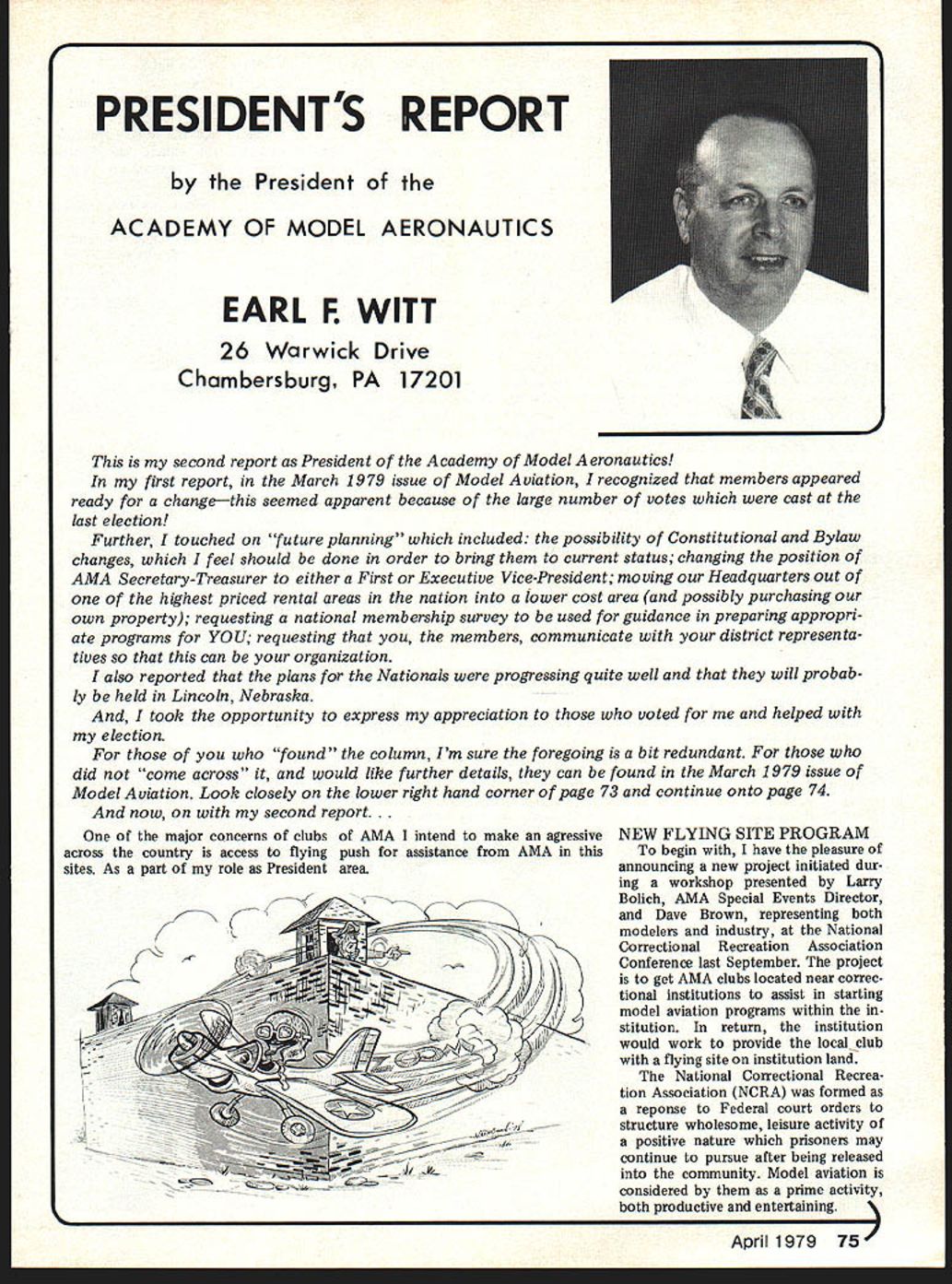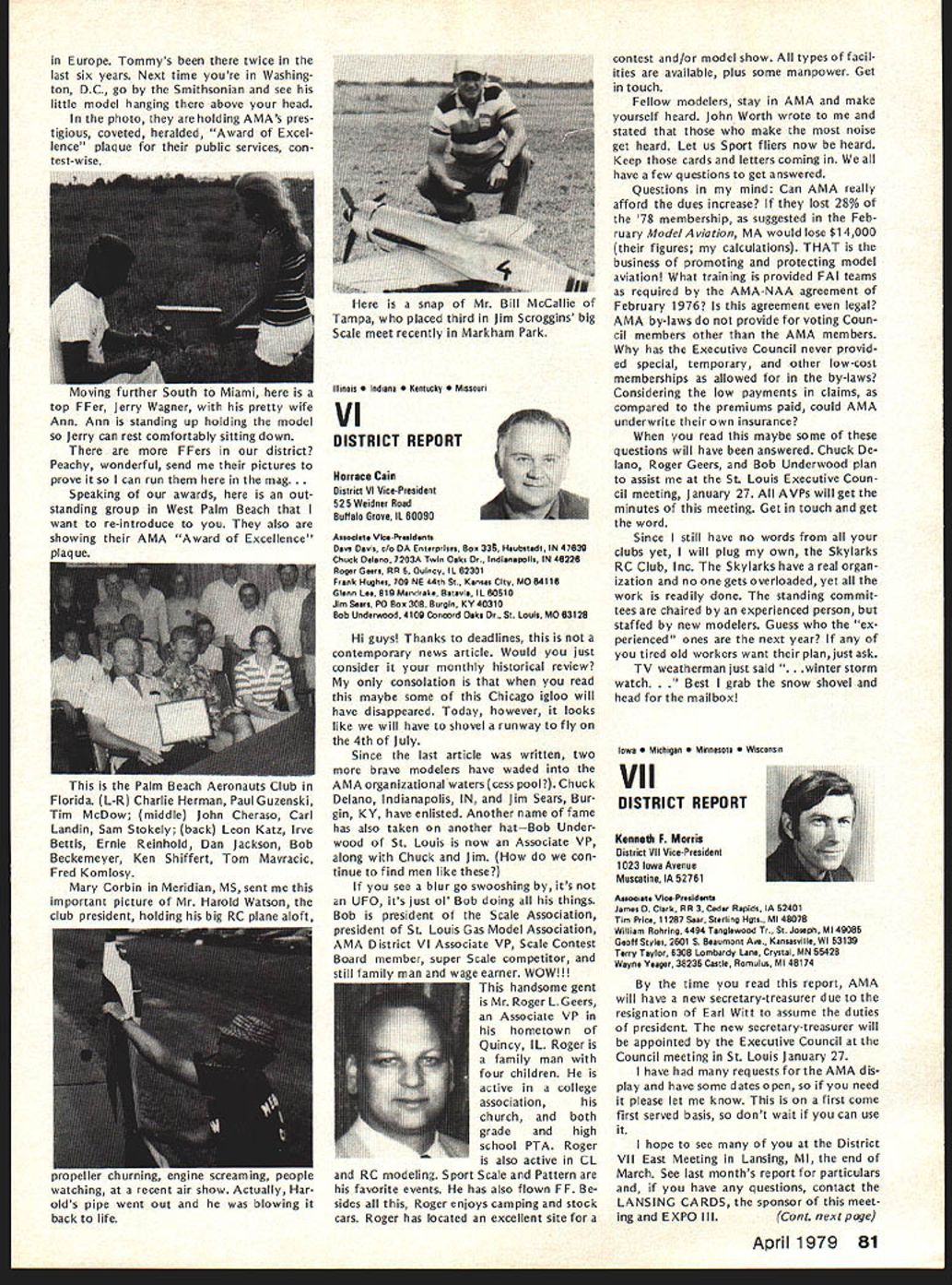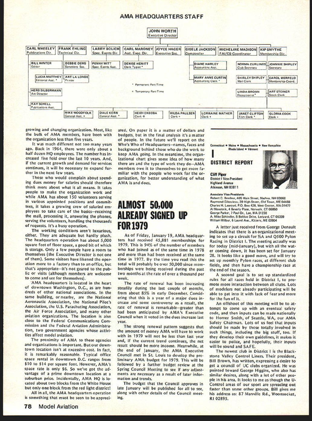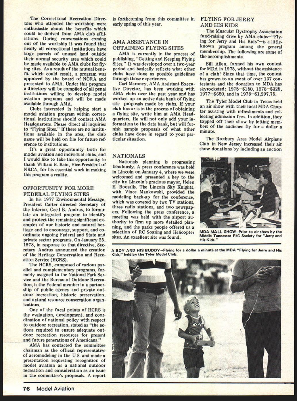 The Model Aviation Hail Fame ini tiated 1969 under joint sponsorship Washington State Air National Guard Academy Model Aeronautics joint venture produced nine awards through 1971 AMA took over sole responsibility program 1972 Since time former AMA presidents current pres ident have served Hall Fame Selec tion Committee Wait Goodhimself Hail Famerserving chairman Objectives recognize individuals have contributed modeling some way out past well currently deserving candidates Thus Hall Fame considers candidates ages periods aspects activity past AMA presidents uniquely qualified ful fill objectives since themselves aeromodeling pioneers present-day leaders Most AMA presidents could qualify Hall Fame Five have honored no past president may vote himself group consider nomina tions other sources current Com mittee also known Council Past Presidents includes following current members dates AMA presidency Ir win G Ohlsson 1943-46 C 0 Wright 194849 Kenneth G Held 1950-51 Frank B Bushey 1952 Keith H Storey 1953-56 Claude McCullough 1957 Dr Walter Good 1958-60 Peter J Sotich 1961-62 John Worth 1963 Maynard L Hill 1964 Howard E Johnson 1965-66 Clifford G Weirick 1967-68 John E Patton 1969-70 John E Clemens 1971-78 19 nominations 1978 Hall Fame selection committee nar rowed down five per normal bal loting procedures Descriptions winners follow Anyone would like submit nomination 1979 should request appli cation AMA HQ submit same before March 31 1979 DUKE FOX 59 founder Fox Manufactur ing Co well-known modelers through out world engines RC CL FF model airplanes pioneer de velopment fuel components model engines having pioneered use nitro methane 1947 special technique ac complish metal bypass port 1949 soft aluminum head gaskets 1950the first pro duction carburetor metered fuel flow 1962 well unique throttle controls other engine innovations commonly used today 35 stunt engine probably has used competition models other over 16000 recorded contest vic toriesl World National Champions have used engine Over years need arose Duke designed developed manufactured other engines RC CL FF configurations Dukes modeling career began 1936 Since founding Fox Manufacturing Company 1950 own competitive participation has waned interest modelers model aviation general keen ever National Contest competitors grateful Duke unselfish donation parts expertise events al ways evidence has also generous providing prizes AMA sanctioned events levelsMore next page Hall Fame Award recipient Duke Fox nrnudlv dianlav hi nveted award AMA HQ Executive Director including reports AMA President Vice-Presidents Worlds Largest Sport Aviation Organization HALL OF FAME AWARDS Las Vegas tle scene Phil Kratt above right receives Hall ot Fame Award Walt Schroder himself Hall Famer Right photo AMA Executive Director John Worth presents Awardto Ed Packard Dukes eye always ways improve performance model airplanes cate gories PHIL KRAFT age 53 among best known figures sport model aviation due participation design ing manufacture radio control equip ment major wins national world contest events designing well-known model aircraft top full-scale aerobatic aircraft boyhood Phil Krafts hobby building flying model aircraft Most modelers dream controlling creations remotely Phil no exception efforts very short time resulted establishment Kraft Systems Inc largest manufacturers radio control equipment world Starting parttime hobby/sideline garage 1962 Kraft Systems grew until now full-time manufacturing complex three buildings de voted almost exclusively design production radio control products hob sport industrial use building lucrative business Phil absent competition scene top winner 1967 RC World Championships took second 1969 World Championships third 1971 National Champion twice also RC Pylon Racing champ Some well-known designs Hi Fli Up-Start Bar-Eli Stagger-Bi Quick-Fli Super-Eli Dragon-Eli Go-Go Eli Ugly Stick Phil has also authored articles several model publications such Model Airplane News Radio Control Models England American Aircraft Modeler THE HALL OF FAME ROSTER 1977 john Brodbeck Maynard Hill Bert Pond Pete Sotich Ken Willard 1976 Merrill Hamburg Henry Struck Erank Ehling Harold deBolt Chester Lanzo 1975 Irwin G Ohis son C 0 Wright Walt Schroder Jim Kirk land Harold W John Alden 1974 W L Bill Brown W R Enyart Irwin Nat Polk Sal Taibi 1973 0 C Randall 1972 Howard McEntee 1970 Dick Korda Al Lewis Bill Winter 1969 Walt Billert Willis Brown Carl Goldberg Walt GoodJim Walker Erank Zaic Charles Grant JOHN WORTH 55 Executive Director Academy Model Aeronautics since 1964 trees forest ef forts often overlooked very people benefit Over past 15 years has made contributions day have helped model aviation Academy Model Aeronautics grow relatively unknown small group people very little national recognition major sport/hobby John member Executive Com mittee Board Directors Na tional Aeronautic Association vicechairman National Sport Aviation Council model aviation chairman Aero Club Washington currently trus tee National Association Rocketry also secretary ClAM aeromodel ing arm Federation Aeronautique Internationale Before becoming Executive Di rector John president AMA 1963 RC Contest Board Chairman 1962 Free Flight Contest Board con test director since 1948 Worth also RC pioneer partner Ed Lorenz others firm Control Research late 40s through mid-50s forerunner Ace R/C Company today authored series articles Model Airplane News Gal loping Ghost RC control system pro duced hundreds kits building RC trans mitters receivers escapements member original AMA-FCC Committee obtained first group RC Citizens Band frequencies model de signs have appeared old Air Trails mag azine several yearbooks Frank Zaic Continued page 77 74 Model Aviation Former AMA President Johnny Clemens above left presergs prestigious award AMA Executive Director John Worth Las Vegas photo right Leon Shulman receives award form er Secretary-Treasurer AMA Earl Witt right now President