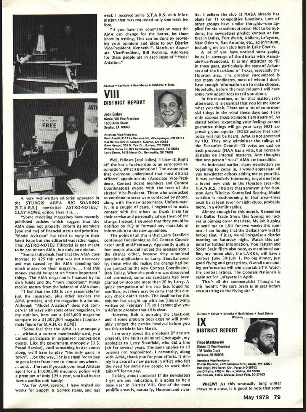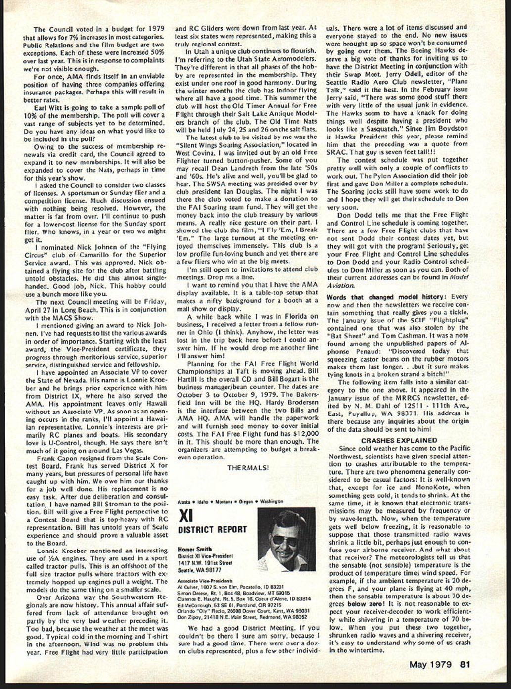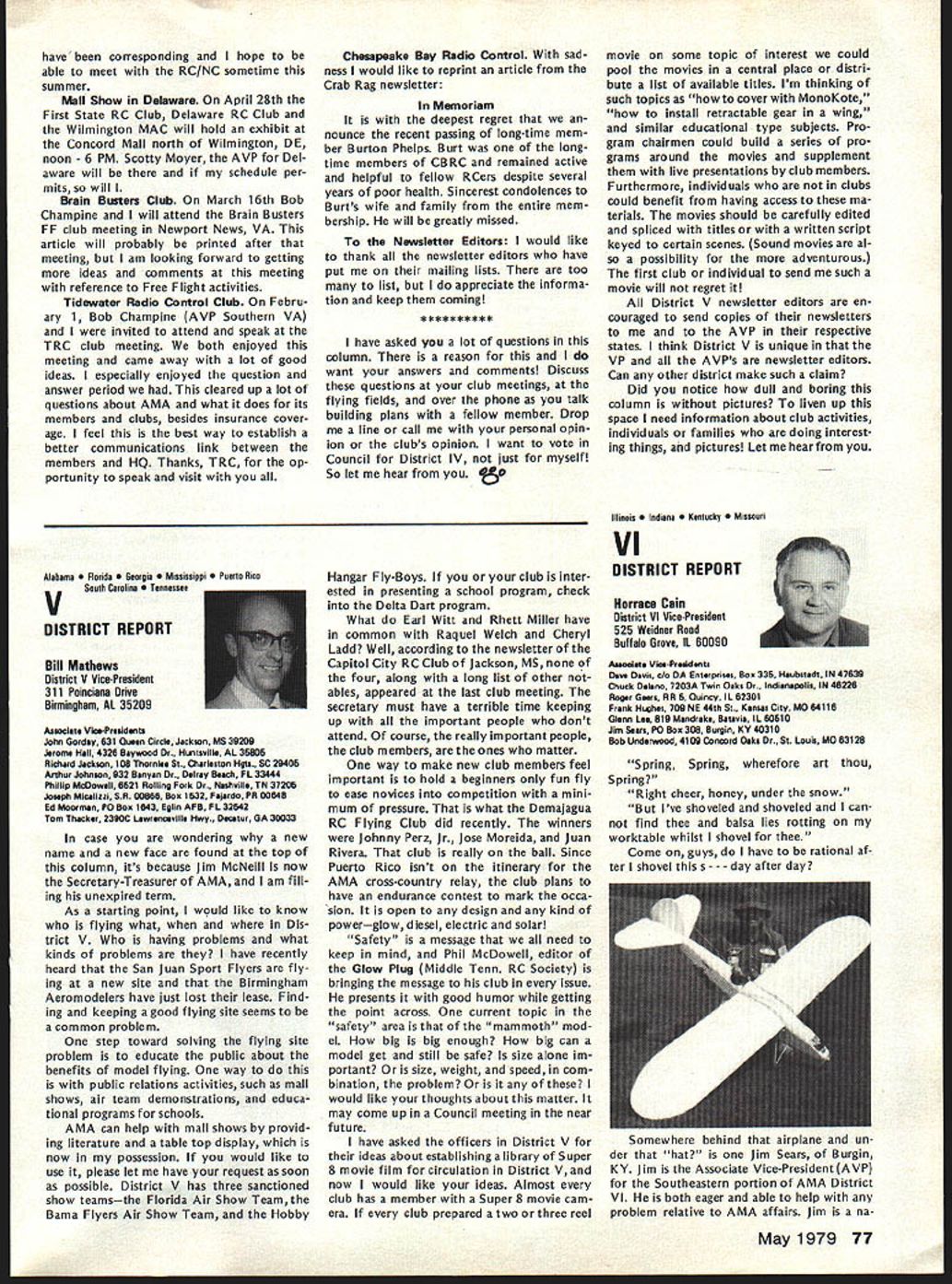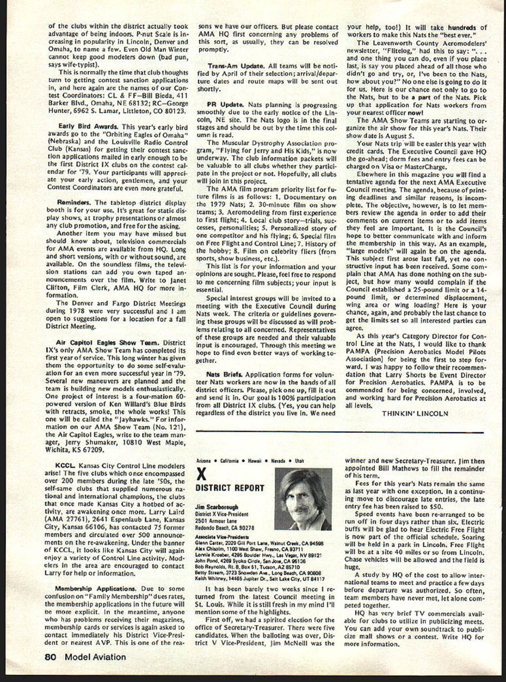 At January 27 AMA Executive Coun cii meeting approved line should drawn concerning model size agreed some limit should defined govern whether insurance coverage should provid ed also agreed however further time should given obtain input AMA members various special interest ganizations might affected noted example Coun cil previously approved seeking recom mendations Quarter Scale Associa tion National Miniature Pylon Racing Association concerning size safety responses requested March 31 Thus tween now next Council meeting April 28th time interested parties offer comments constructive sugges tions proposals subject Continued page 73 tentative AMA budget prepared HQ staff January 27 Executive Council meeting provided detail usual particularly regard breakdown expenses various departments con sidered tentative because subject furth er review refinement next Council meeting April time final 1978 financial statement will availableit tentative budget prepared HQ budget effort year comprehensive ever attempted merely rehash updated version last year new feature 79 expense budget showing allocations departments major divisions effort allocations include percentages salaries people efforts support department addi tion directly assigned depart ment example under Public Relations show $60577 includes full-time ries Special Events Director Larry Bolich assistant Penny Witt plus 20% salaries AMA Executive Director 5% Mrs Jackson AMAs Comptroller 5% assistant 15% AMAs in-house printer 5% mail clerk 20% stock clerk 20% receptionist 20% general part-time clerk addition allocated percentages rent telephones postage freight office supplies printing plus actual amount $35700 79 bud geted department operations during year Thus budget year compared other years better shows costs involved various operations including support personnel actually assigned department involved business department Other area Special Projects PR budget does contemplate doACADEMY OF MODEL AERONAUTICS Break-Even aian 1979 Budget No Membership 80000 70000 60000 Break Line 50000 0 30000 20000 100000 Expense100000 300000 Membership Income $ 1764000 1543500 1323000 1102500 -882000 -441000 -J 91 x uJ 15000001700000 May1979 69 AMA HQ Executive Director including reports AMA President Vice-Presidents ACADEMY OF MODEL AERONAUTICS 81 5 Fifteenth Street NW Washington DC 20005 COUNCIL APPROVES TENTATIVE BUDGET FOR 79 APPROVED MODEL SIZE UMITING Status asof March 11979 cP~ 50000070000090000011000001300000 ACADEMY OF MODEL AERONAUTICS Tentative Budget Part ating Expenses Allocations $452188 18835 34401 Expenses Salaries l departments Annuity Retirement Program Payroll Taxes Total related salaries$ Rent approx 5000 sq ft Telephones Postage ght exclusive membership processing Membership Processing Membership Insurance $275 per member Rule Books Public Relations Operations Travel Supplies etc Awards FlImProjects uction Travel Equip Rental Services Processing Film Library HQ Service Officer Service VP budgets Council travel etc Magazines officers Contest Directors etc Staff Travel Council Trade Shows Meetings Office Supplies stationery materials Office Equipment Maintenance Printing Professional Fees legal audit consultant Insurance General Depreciation Bad Debts Personal Property Taxes FAI 53527 x 50 Teams Programs Mtgs NAA Divisional Fee cost FAI franchise Scholarship Program Totals usive magazine direct costs Model Aviation Magazine Direct Costs Model GeneralMembershipAviation AdministrServicesMagazine Total 505424 28350 13000 32000 $ 91905 13233 6500 14700 81375 179025 7400 35700 1 000 33400 5000 34248 10752 14000 24000 4625 8500 15000 11500 10500 600 3000 26764 26764 1000 $1112927 410307 $134321 6655 1950 9000 81375 179025 7400 $1 42672 3429 direct cost * 4000 FAI & Contests Nats $ 75949 2033 1950 1800 1 000 33400 5000 34248 10752 7000 8400 4625 680 15000 11500 10500 600 3000 1000 $273043 7200 3400 3600 340 7000 2400 2720 26764 26764 $430326$154041$147380 ______________410307 TOTAL Operating Expense *Magazine has separate phone lines $1523234$273043$430326$564348$147380$108137 ing last year Most expense increas es simply inflationary approximately 7% increase applied areas Thus mostly hold-the-line budget HQ opera tions rather expanded services could change however further re view later year shows greater currently budgeted income available im prove HQ services budget assumes will sign up 90% members 197863579 estimated 79 vs 71227 actual paid mem bers 1978 appears conserva tive figures currently running about 94% last year trend gradually creasing further quite encourag ing since Council member estimates voted dues increase last year optimistic rough summary budget pre sented promiseseven ac ceptance special projectsa surplus about $45000 accordance pre viously expressed Council desire build reserves back up couple years ago AMA over $200000 reserve got completely used up 1978 proposed dues increases 1977 1978 de ferred until 1979 over 50000 members already signed up 79 rate continuing improve already have mid-February about 3/4 income will need fulfill bud get time spring Council meeting should able take second look budget final modification balance budgeted income assured rest year note about Model Aviation budget small surplus shown bottom tentional use almost funds available produce best magazine possible magazine budget easily controlled ad justing expenses monthlyas necessaryto stay within income Since have pay taxes magazine profits despite tax-ex empt status magazine budget based minimizing surplus net result situation produce magazine value members budget shown should mean pages color coverage etc 79 magazine budget also includes allo cation distribution magazine free members AMA Some explanation may helpful Executive Council has established policy whereby AMA officers certain Contest Directors receive free memberships token reward services performed behalf AMA members Note AMA has about 160 volunteer officers hundreds Contest Directors