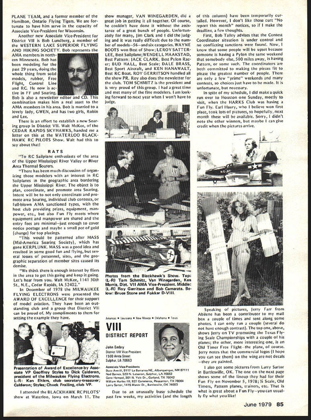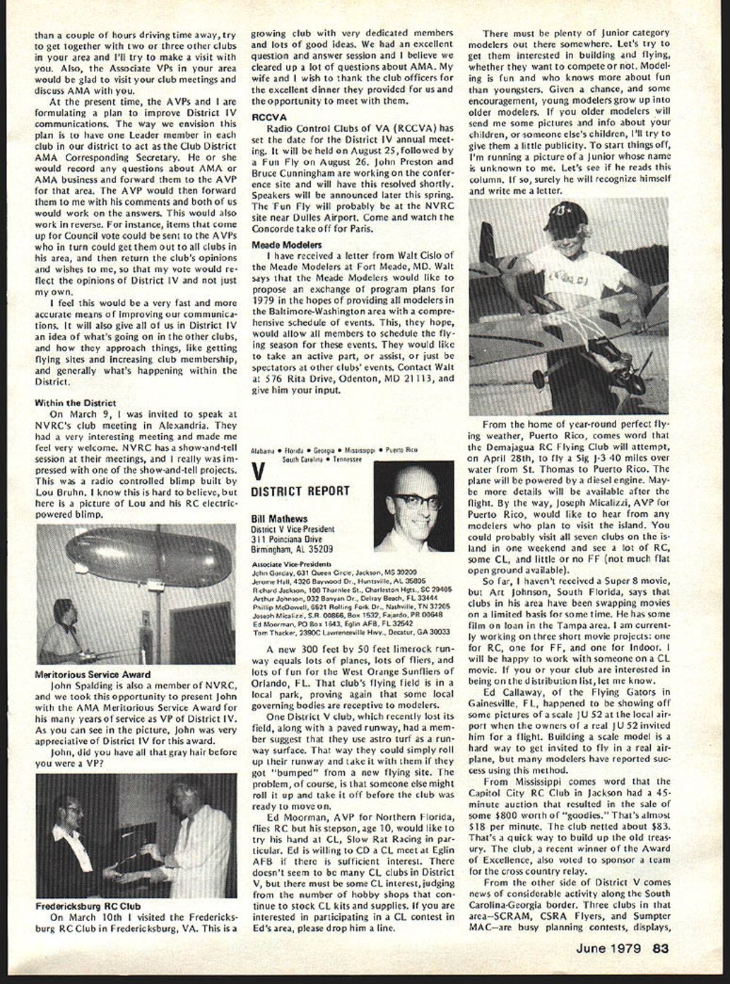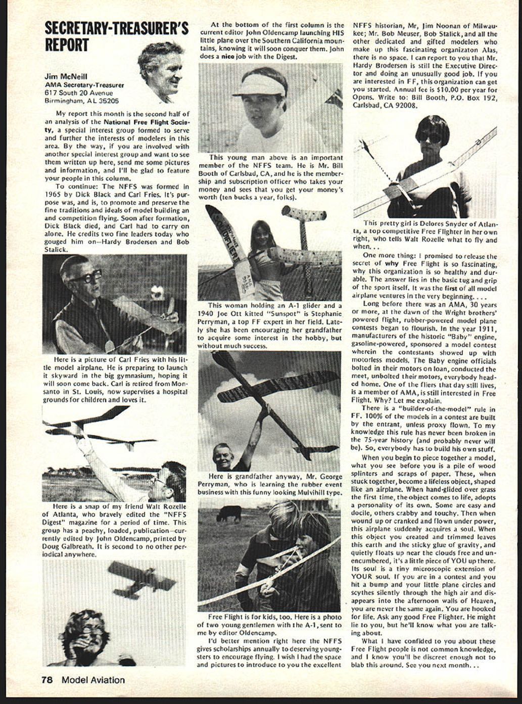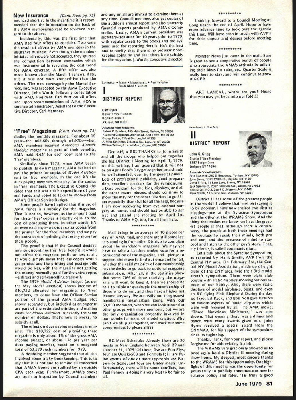 L JANUARY 21 EXECUTIVE COUNCIL MEETING Council met Sheraton Hotel St Louis Missouri following tendance President Earl Witt Chambersburg PA Secretary-Treasurer Vacant Executive Director John Worth Fairfax VA Vice-Pres ident District Cliff Piper Atkinson NH VP II John Grigg Lockport NYAssoc VPIll Joe Eiben Lyndhurst OH VP IV Chuck Foreman Mechanicsville VA VP V Jim McNeill Birmingham AL VP VI Horrace Cain Buffalo Grove IL VP VII Kenneth Morris Muscatine IA VIII John Embry Sulphur LA VP IX Vince Mankowski Belle vue NE VP X Jim Scarborough Redondo Beach CA VP XI Homer Smith Seattle WA National Aeronautic Association NAA Executive Director Vic Powell Also attendance Associate Vice-Presi dent Roger Geers guest Horrace Cain Carl Wheeley Model Aviation publisher Larry Bo lich AMA Special Events Director Jay Gerber AMA films Johnny Clemens President Emer itus Earl Witt President convened first meeting new year operating under new format minutes being taken professional stenographer provide accur ate literal transcription Witt noted Section III Article X bylaws says President shall chief AMA may preside meet ings AMA shall ex officio regular special committees shall have authority establish resolve committees Council established appoint remove committee chairmen make final binding decisions relative dis putes protests some discussion whether Council approved hiring reporter take minutes approval record Discussion also merits hiring verbatin court reporter opposed using AMA HQ person familiar Council proceedings capable helping VicePresidents background information Man kowskj IX read previous minutes approved Ms Madison would continue taking minutes Morris VII made motion return previous way taking minutes someone HQ under procedure last year seconded Man kowskj Eight voted favor three negative votes two abstentions motion carried Election Secretary-Treasurer Witt pro posed using two-thirds majority quorum elected Council members would have excluded NAA representative voting Worth said NAA representa tive always vote Discussion ensued whether should allowed vote meeting due apparent con flict bylaws Powell NAA said under provision agreement tween AMA NAA Discussion continued whether bylaws agree ment between AMA NAA binding Embry VIII called fora refer endum subject business could continued Morris VII seconded After dis cussion Smith XI reworded motion Powell could continue voting before until such time bylaws changed Witt amended motion vote concerned just issue election Secretary-Treasurer Cain VI seconded Fol lowing discussion vote amendment resulted two positive votes 12 negative votes no abstentions Another vote tak en time original motion Smith produced 11 positive votes two ab stentions Ill first ballot election Sec retary-Treasurer six votes J McNeill VP-V four votes J Byrne mer VP-Il three votes R Morgan former VP-Ill abstention eliminated Mr Spalding former VP-IV Mr Chisoim former VP-X earlier offered serve second ballot five votes McNeill five votes Byrne three votes Morgan abstention elimi nating Morgan third ballot seven votes McNeill six votes Byrne abstention McNeill won simple majority Witt moved Council make election unanimous done McNeill nominated Bill Mathews replacement District V VP Smith se conded everyone voted affirma tive except District Ill NAA rep resentative abstaining 1979 Nationals Witt reported behalf Nationals Executive Committee met earlier January During discussion report Smith proposed Electric Power Free Flight competition added Satur day Nats week per rule book Embry proposed four-day schedule Control Line Speed events reduce wasted time cut cost manpower run events Smith suggested since McNeill come District V representative should allowed represent district meet ing Since no objections Witt ordered further discussion Nationals Scarborough X asked clarification late entry fee Open members confirmed will $50 late entry fee Opens $5 late event fee except $10 RC Worth brought up letter Bill Hager President NMPRA recommending elim ination requirement slotted pipe RC Pylon Racing 79 Nats Witt proposed put question Contest Board however discussion favor go ing rule book Smith moved run event Nationals per rule book un less two conditions met 1 Con test Board agrees NMPRA proposal 2 can printed initially entry form seconded Mr Grigg fol lowed everyone voting yes President abstaining time Mr Mankowski moved amended recommendations Nats committee accepted Morris seconded unanimously approved 1979 Free Flight World Championships Worth noted President established Executive Committee similar the Nats composed Earl Witt John Worth Jim Scarborough Hardy Brodersen Bill Har till Bill Bogart committee decide policy matters budget matters concern ing Free Flight World Championships Bill Hartill Contest Director Bill Bogart Manager Hardy Brodersen Administrator Headquarters provide support necessary satisfy FA requirements regarding communications National Aero Clubs around world accepting entry fees holding disbursing funds accordance budget World Championships Committee authoriza tions intent event shall operaate within amount money thats col lected directly connection event also exceed amount money current AMA/FAI fund noted Council previously approved use balance fund remaining previous years necessary currently about $12000 1979 Budget Magazine Carl Wheeley publisher Model Aviation gave lengthy report history magazine financial fac tors involved benefit Council members werent office mag 74 Model Aviatjon AMA HO Executive Director including reports AMA President Vice-Presidents L azine began noted 1979 budget contemplates 54797 members receiving magazine based upon conservative estimate will 90% total members compared last year Actually pointed out recent renewal rate formation indicated currently 94%so income figures budget extremely conservative budget Wheeley advised envisions further improvement magazineboth number pages increased use color increase advertising However c
