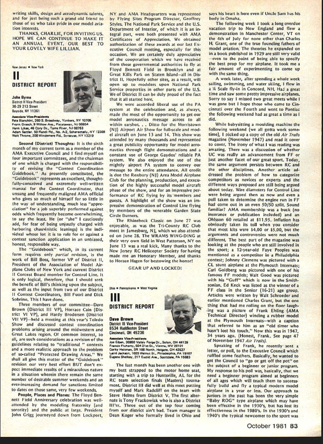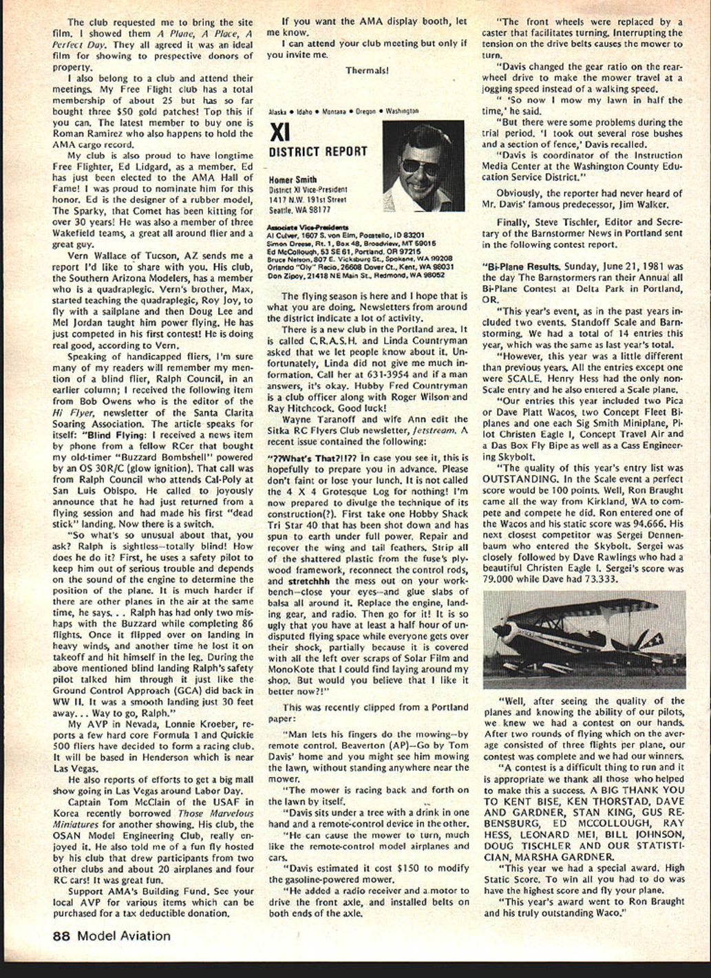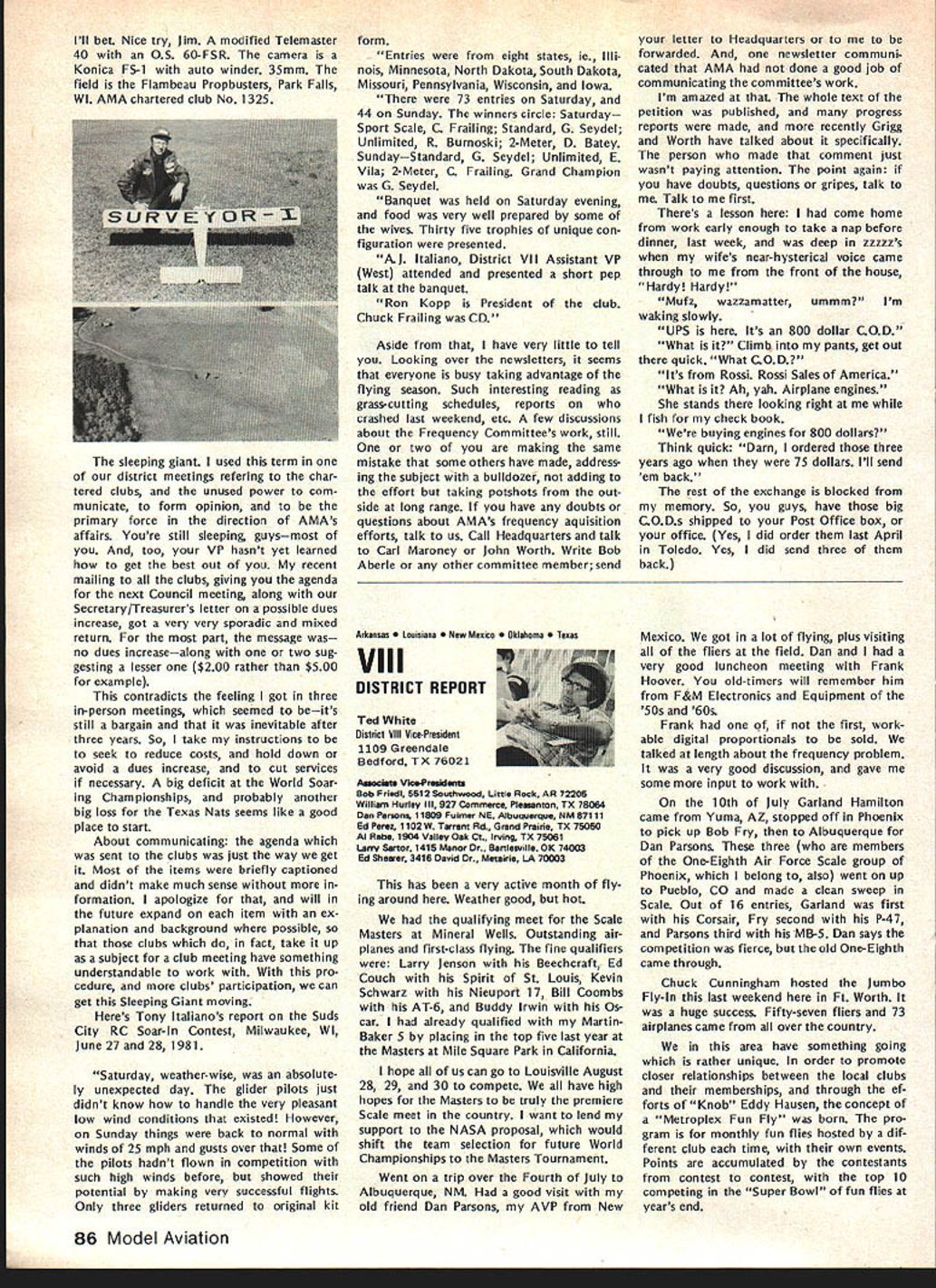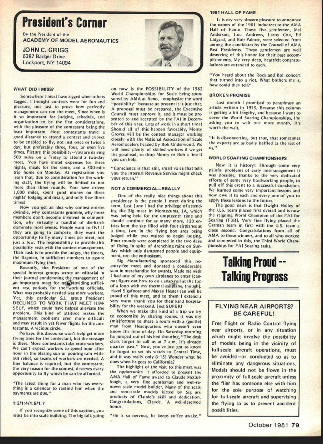 AMA Will Bequests Jeremiah Courtney AMA General Counsel As Columbia University College Law School alumnus am regular reader University magazine Columbia Spring 1981 issue carried very interesting interview former University trustee 1966-72 has spent great part latter years life encouraging public corporations increase corporate philanthropic donations businessman interviewed Law rence Wien distinguished 76-year-old New York City lawyer described introduction interview owning much real estate Manhattan Lincoln Building old Equitable Life Graybar Lexington St Moritz hotels formerly Plaza Columbias favor ite song asks Oh owns New York' relationship Empire State Building perhaps best gives flavor man owns words has ninety-five year lease expires plan renew introduction interview contin ued Mr Wien has found what wants support higher education health cultu ral organizations has found way himself corpora tions well Wien became master builder real estate syndicates through unique simple idea setting up invest ment groups legally seen en gaged business therefore subject stiff corporation taxes has found anoth er unique simple way nudging public corporations take advantage five percent pretax deduction contributions philanthropic causes Attention model manufacturers essence Mr Wiens way has buy 100 shares stock about 250 public corporations After become stockholder write corporations say own hundred shares represented certificate number so contemplate presenting proxy proposal recommending increase philan thropic giving please let know what giving has year reply 19 out 20 cases get information Sometimes letters sort ignored get figures file proposal recommend go five percent pretax domestic earnings theyre entitled know annual statements what earnings can figure five percent amount recommend What request ignored write proposal requested figures refused must say thats effective way get response some corporate officers respond sit down work out increased giving plan agree raise level giving withdraw proposaltheres no reason file am interested fighting have objectiveto increase substan tially amount money corporations give tremendously successful approach down 35 40 corporations now led Mr Wiens identification New York Times last year lone ranger corporate philanthropy Mr Wiens personal philosophy inter ested first thing excess money create security beneficiaries said conceded good point lives have ruined through injudicious excessive generosity parents have actually deprived beneficiaries opportunities develop adults able handle problems share Mr Wiens philosophy may have primary reason yourself bequest AMA after creating measured security personal beneficiaries Another substantial reason such bequests enormous tax take levied against decedents estate substantial size try explain states death tax scheme would beyond scope article competence author very meaningful event because state estate taxes vary widely state legis latures seem tinker death tax laws rather frequently unless have stud ied subject individual have planned estate have taxable value $178290 can count having scheduled appointment Internal Revenue Service survivors Accordingly should have passing knowledge pun intendedI promised non-solemn discussion estate taxes As indicated can have taxable estate up $1 78290 single person paying federal estate tax Once es tate crosses line however next dollar taxed rate 304% $200000 federal tax $6600 Additional dollars subject higher percentage rate point five million dollar estate example federal government takes $2112200 next dollar taxed rate 588% will no doubt glad know beyond point lying between $5000000 $51000000 marginal rate tax rate applied next dollar estates taxable worth begins fall off slowly Right now probably asking self Hey earned net worth should give half Uncle Sam fritter away things never liked cant see wealth will support something has made happy Well can testamentary gift charity recognized under Section 501 c3 Internal Reve nue Service code expempt estate gift taxation IRS recognizes AMA under Section 501 c3 educational scientific organization have en joyed model aviation may wish con sider remembering AMA its activities Will tax-exempt giftwith absolute assurance dollar leave AMA dollar will support activi ties enjoyed will further pro nounced scientific educational other public interest factors have valued own modeler activity its general purposes language used suggested form bequest de October1981 77 AMA HQ including reports AMA President Seci-etary-T reasu rer Executive Director Vice-Presidents ACADEMY OF MODEL AERONAUTICS 81 5 Fifteenth Street NW Washington DC 20005 signed show testator did tend restrict use money beneficiary testator said ex ample pport annual AMA blimp races AMA would either have hold annual blimp races decline gift ask court declare stated purpose unreasonable impracticable money freed other cor porate purposes Any gift course much better received given restrictions its use no other reason stated purposes often become unreasonable burdensome passage time Consider example value good faith well-meaning bequest dedicated autogyro research development compe tition received 50 years ago imagi nary bequest might have useful testator died today having written restriction 50 years ago gift might useful contemplated testamen tary gift AMA its general pur poses will usually best can make does mean course gift earmarked specific continuing cor porate purpose would acceptable simply would give intended bene ficiary maximum amount flexibility its use states can write own will assured last gifts given intend should seek aid lawyer drafting execution revision last important work lawyer can help say exactly what want say avoid hidden pitfalls layman contribute reducing amount estate tax otherwise payable es pecially case married couples Law yers fees usually quite reasonable preparation will making revisions called codicils example testator pre-existing will entirely