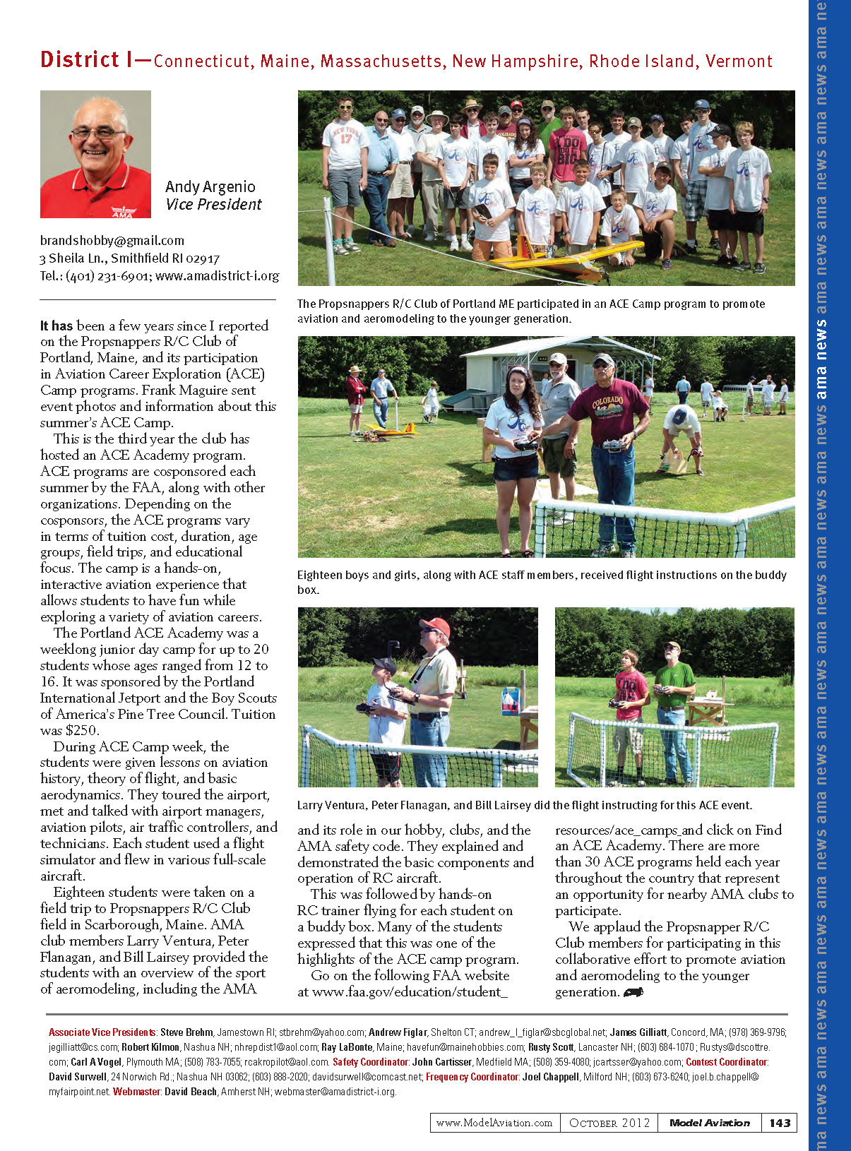 Associate Vice Presidents: Steve Brehm, Jamestown RI; stbrehm@yahoo.com; Andrew Figlar, Shelton CT; andrew_I_figlar@sbcglobal.net; James Gilliatt, Concord, MA; (978) 369-9796;