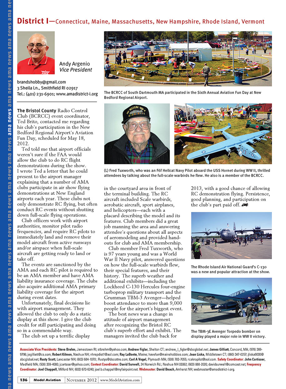 The BCRCC of South Dartmouth MA participated in the Sixth Annual Aviation Fun Day at New Tel.: Bedford Regional Airport.