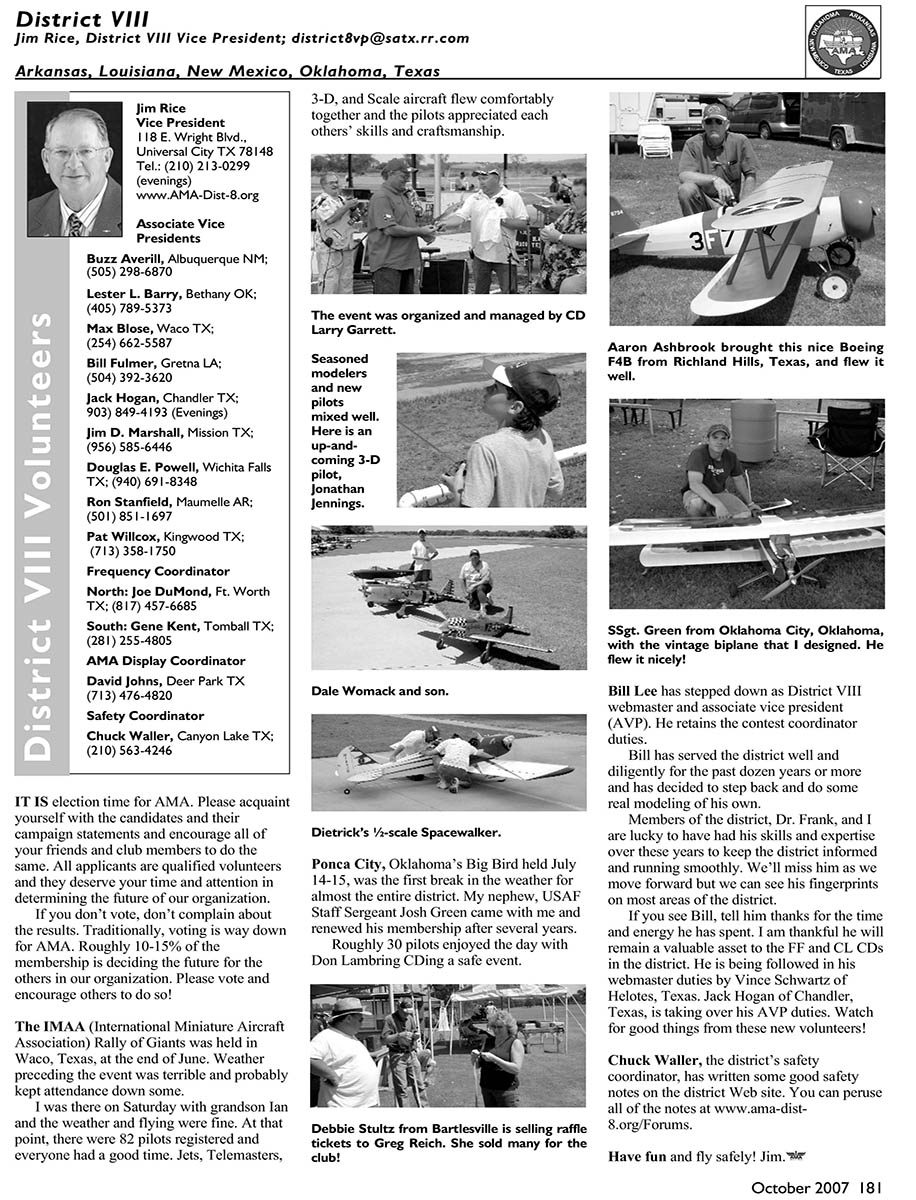 Jim Rice, District VIII Vice President; district8vp@satx.rr.com