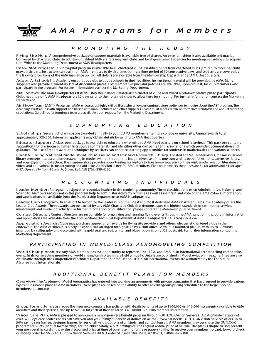 may be borrowed by chartered clubs. In addition, qualified AMA staffers may visit clubs and local government agencies for meetings