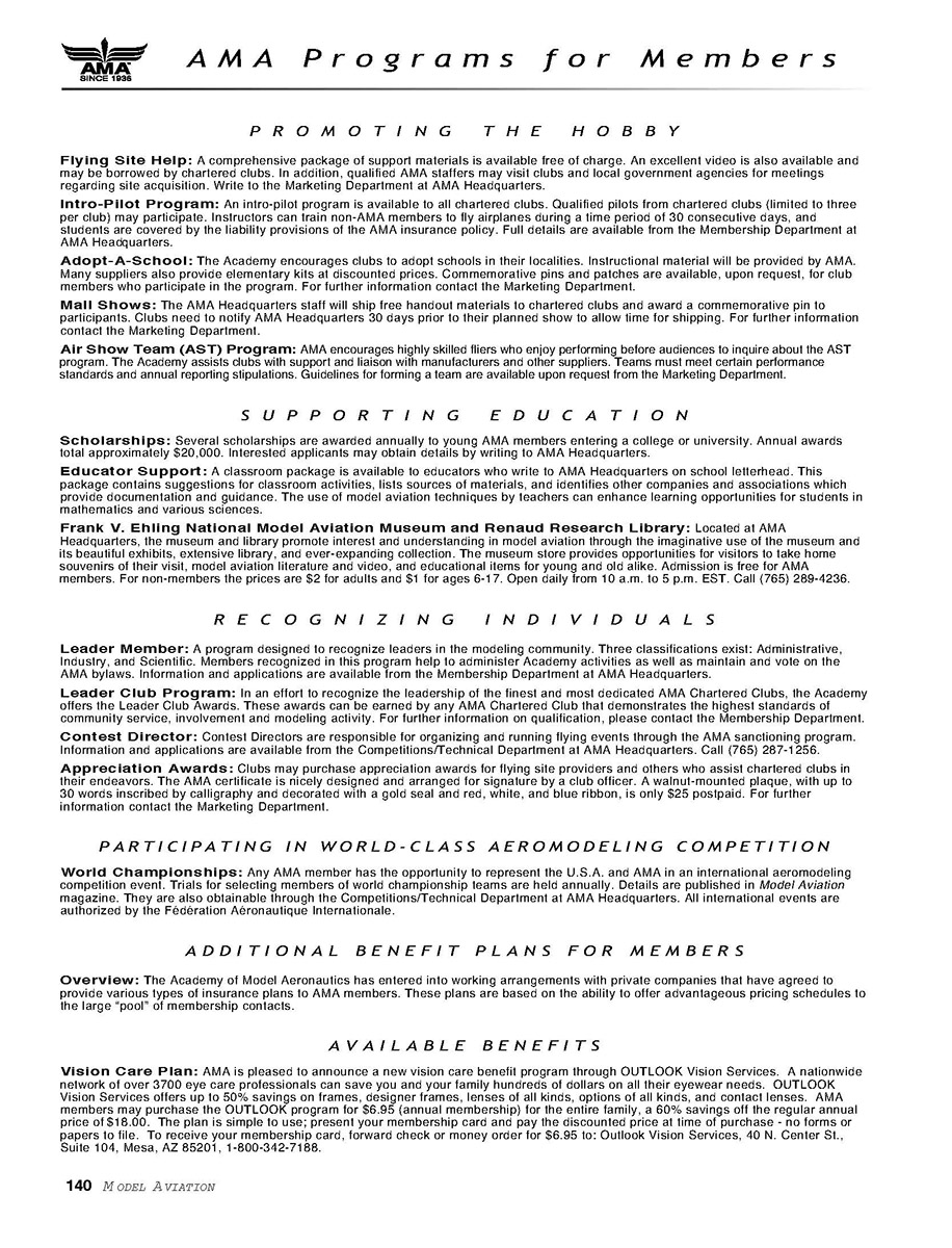 may be borrowed by chartered clubs. In addition, qualified AMA staffers may visit clubs and local government agencies for meetings