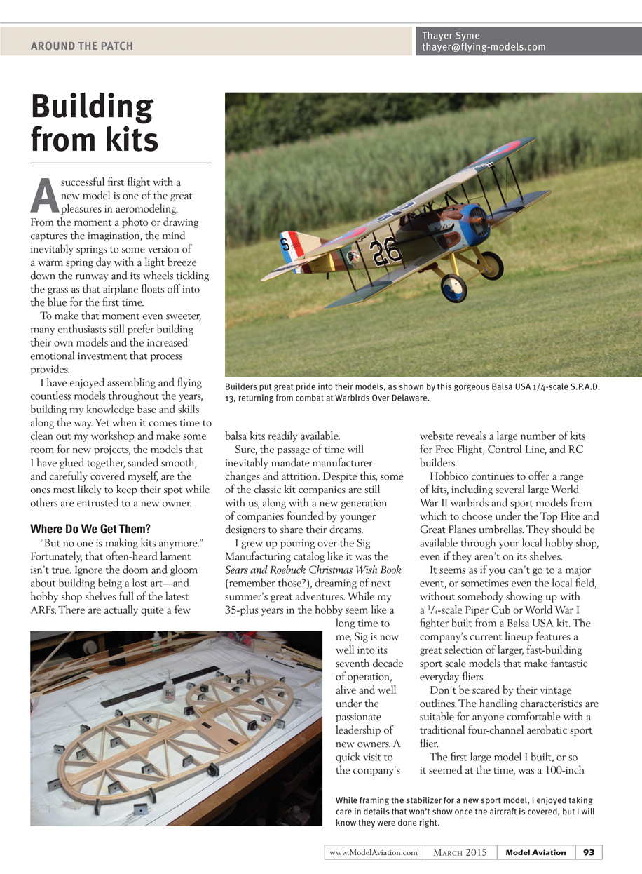 I would venture that the names I’ve mentioned are less than 10% of the North American vendors selling kits today, with offerings that span the full history of flight. Ask at your local club, flip through the ads in this and other model magazines, and search online to find others that suit your specific tastes.