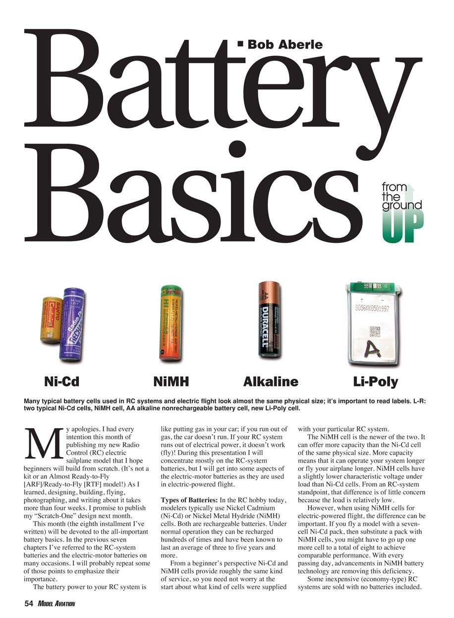 two typical Ni-Cd cells, NiMH cell, AA alkaline nonrechargeable battery cell, new Li-Poly cell.