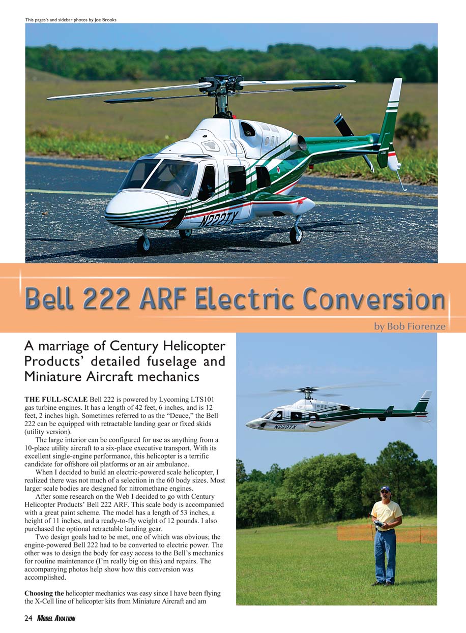 Helicopter Products’ Bell 222 ARF. This scale body is accompanied