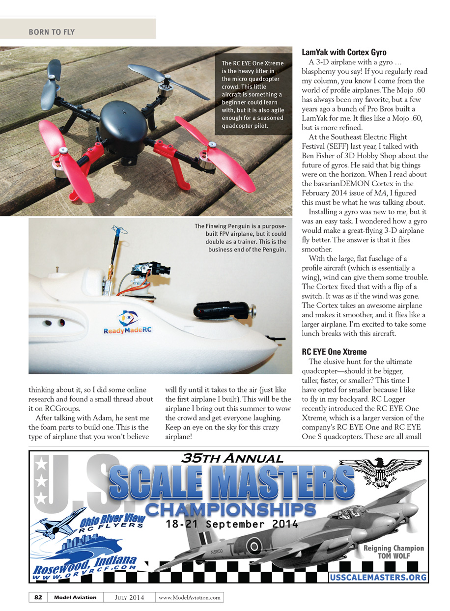 A 3-D airplane with a gyro … blasphemy you say! If you regularly read my column, you know I come from the world of profile airplanes. The Mojo .60 has always been my favorite, but a few years ago a bunch of Pro Bros built a LamYak for me. It flies like a Mojo .60, but is more refined.