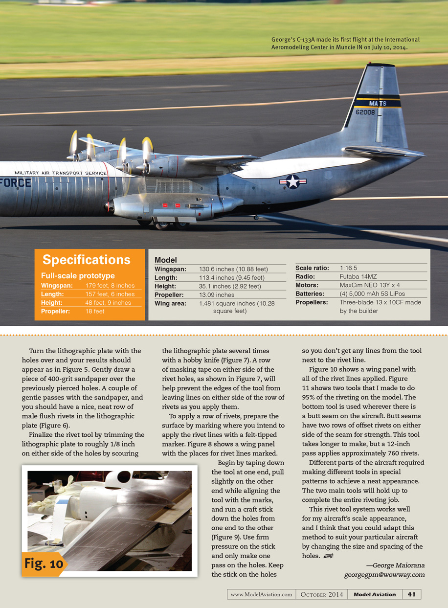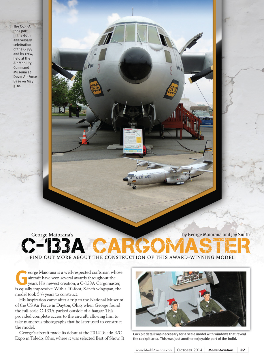 George Maiorana is a well-respected craftsman whose aircraft have won several awards over the years. His newest creation, a C-133A Cargomaster, is equally impressive. The 10-foot, 8-inch wingspan model took 51/2 years to construct.