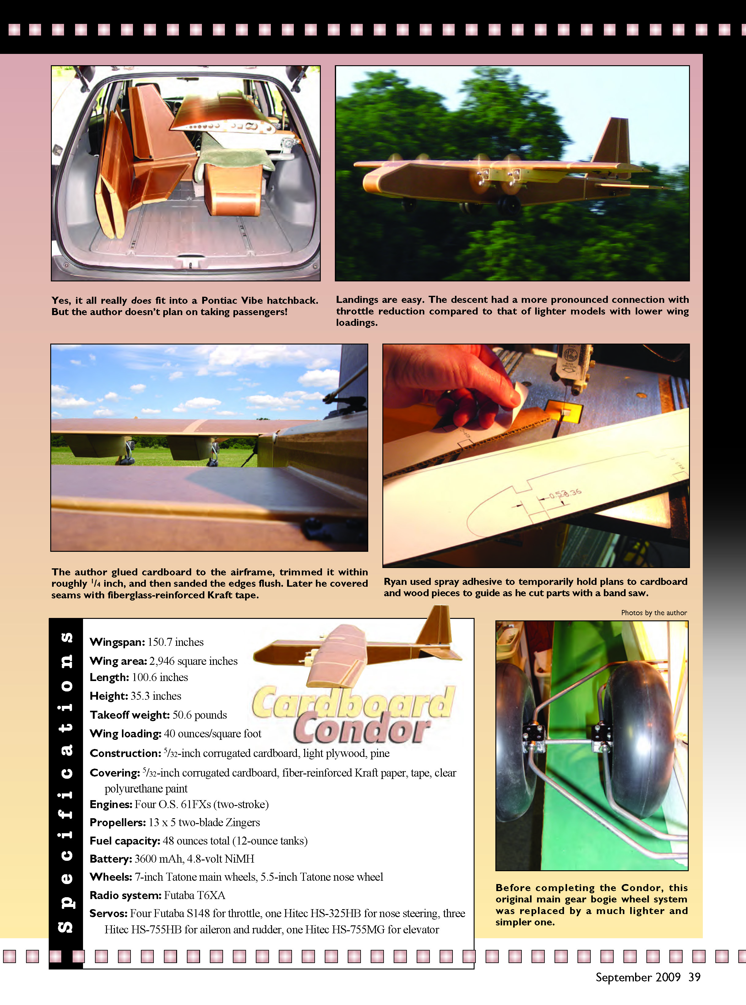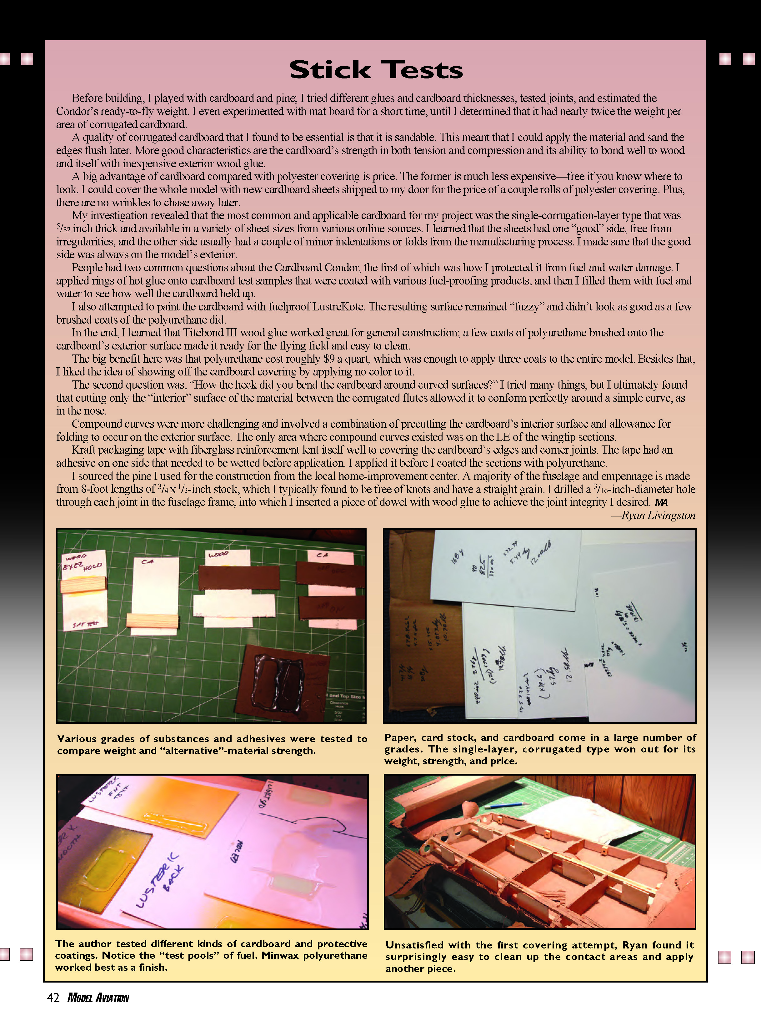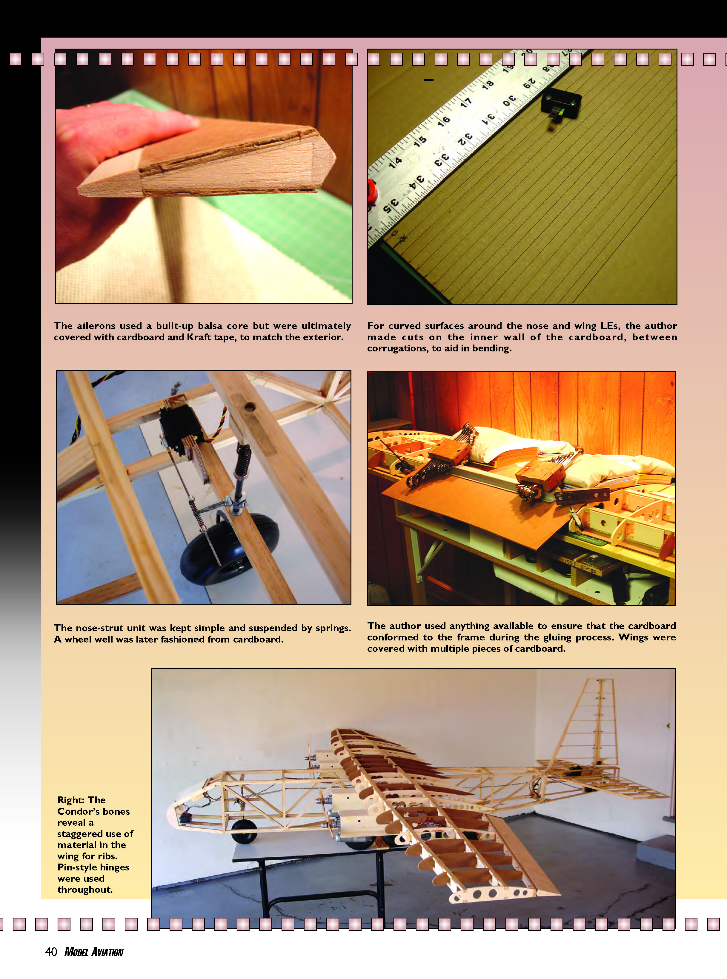 Condor’s ready-to-fly weight. I even experimented with mat board for a short time, until I determined that it had nearly twice the weight per