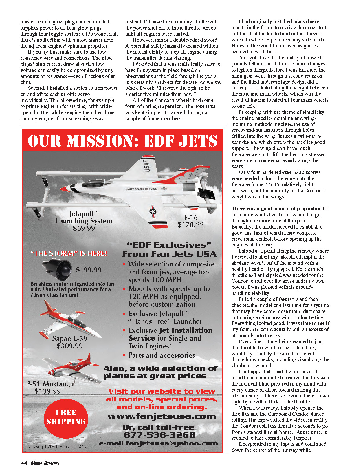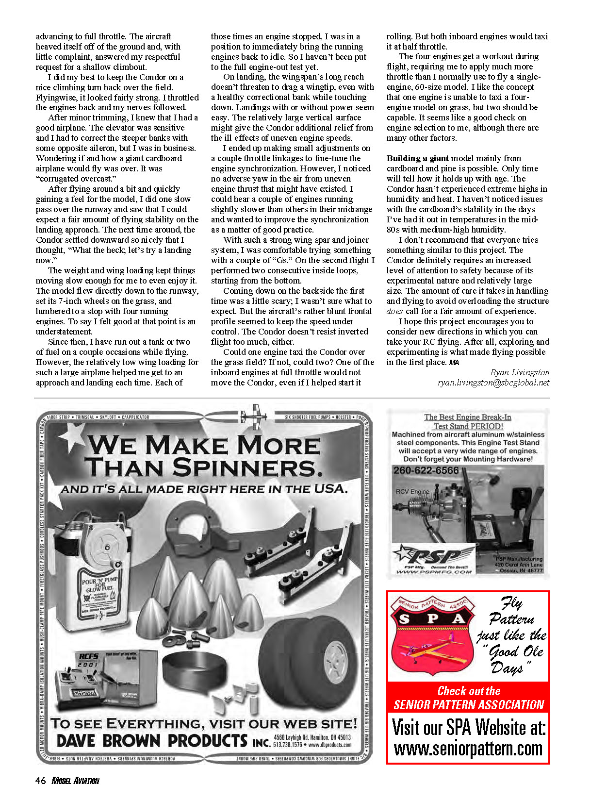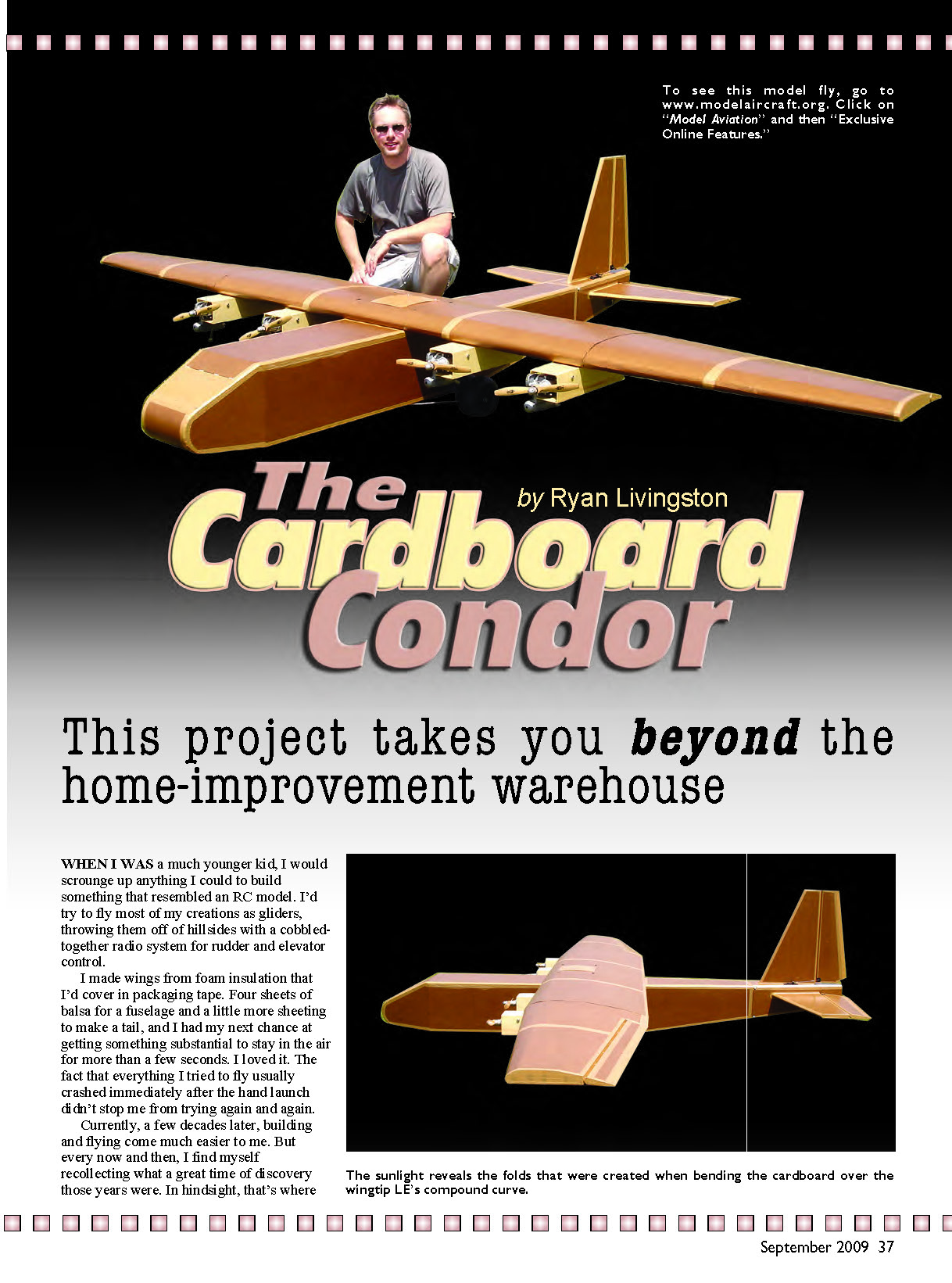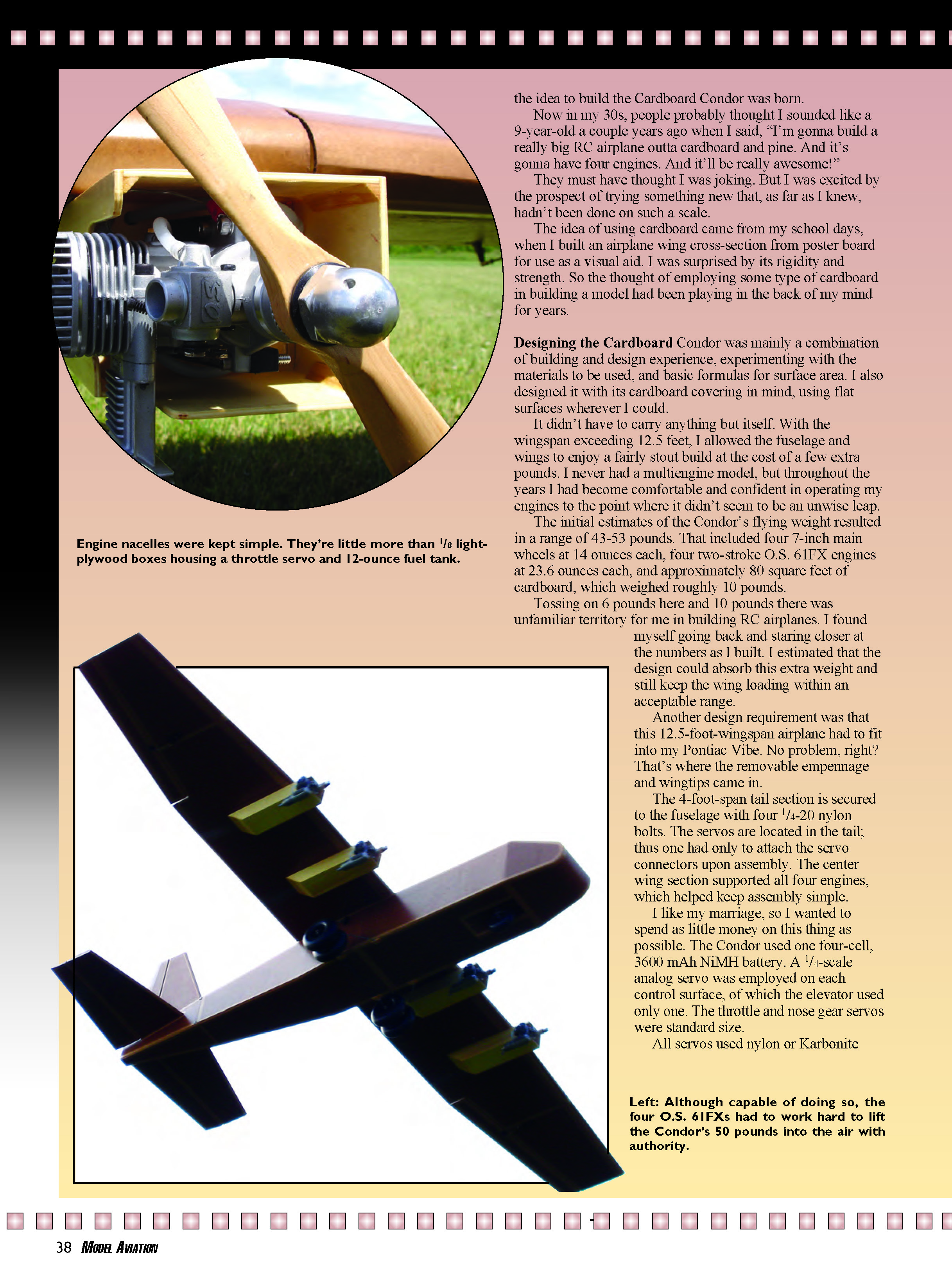 Condor’s ready-to-fly weight. I even experimented with mat board for a short time, until I determined that it had nearly twice the weight per