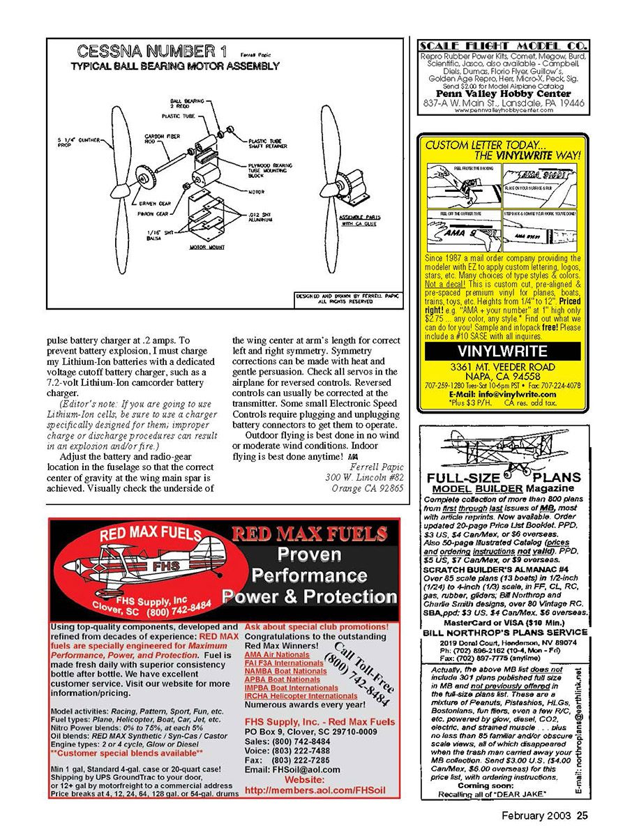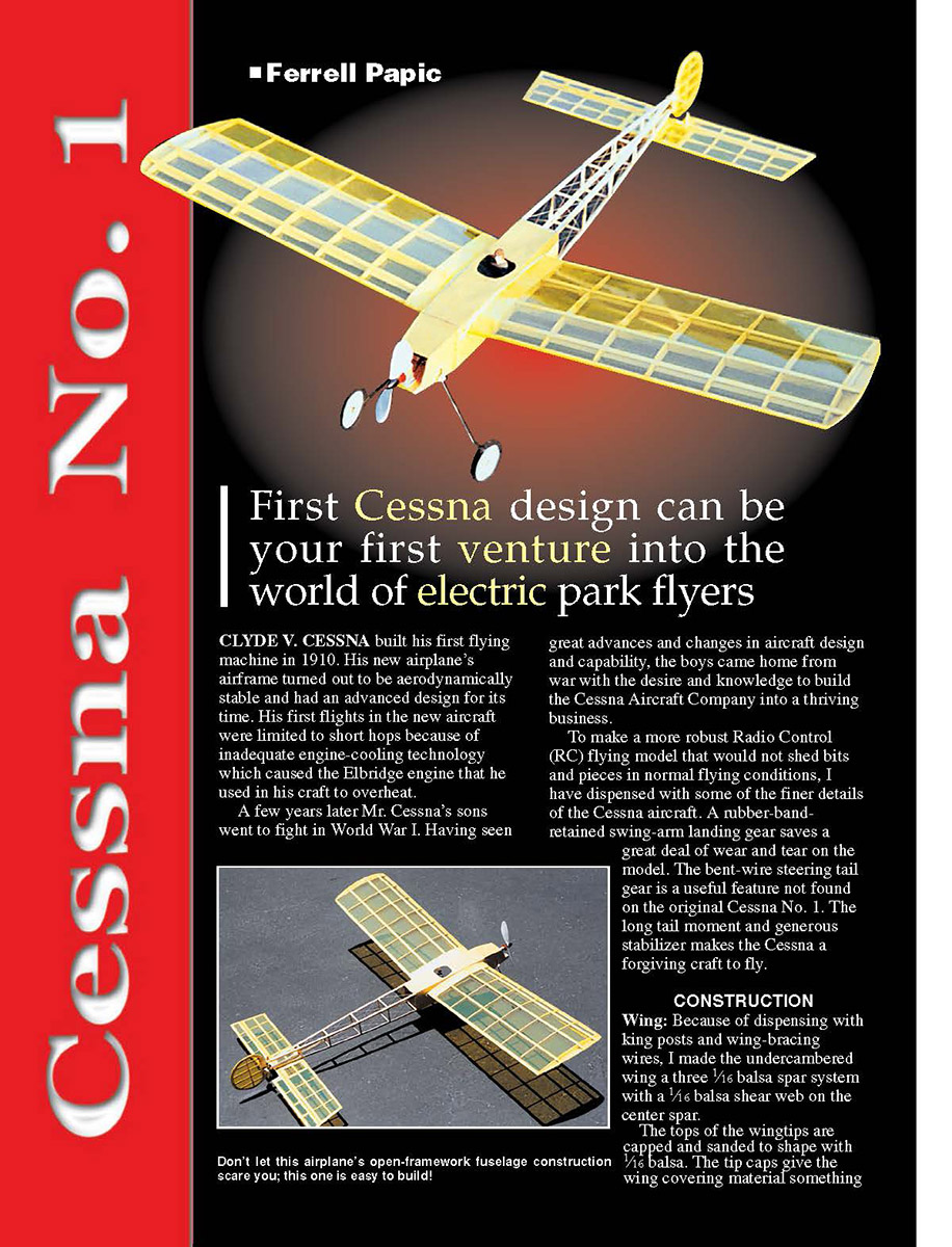 Text explains how to make this scalelike pilot with goggles. The Cessna’s rudder is hinged to the rear of the fuselage