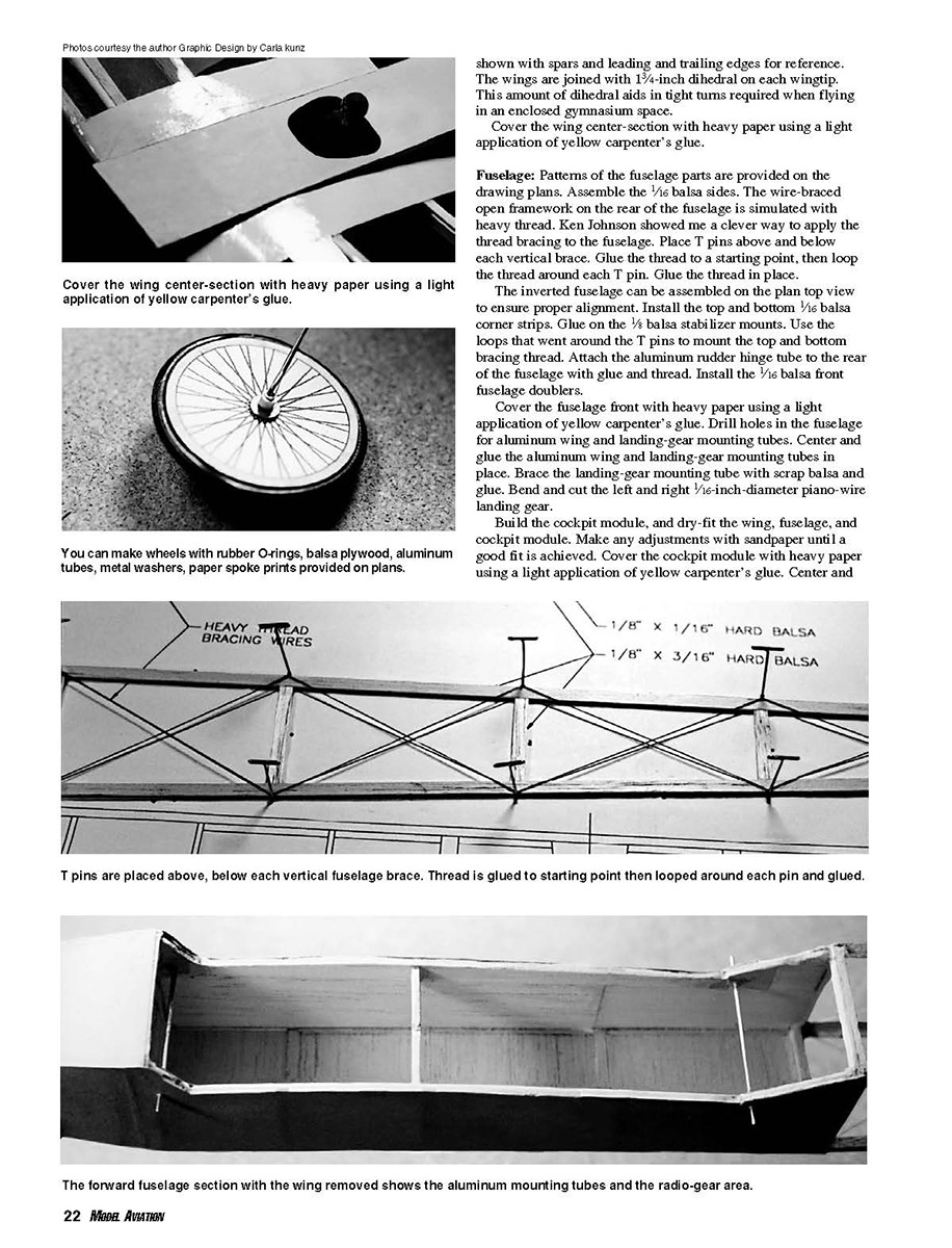 drawing plans. Assemble the 1⁄16 balsa sides. The wire-braced