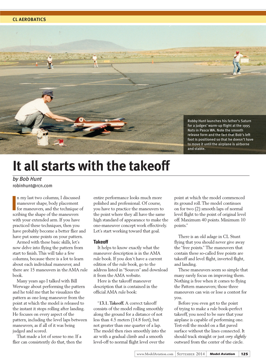 There is an old adage in CL Stunt flying that you should never give away the “free points.” The maneuvers that contain these so-called free points are takeoff and level flight, inverted flight, and landing.