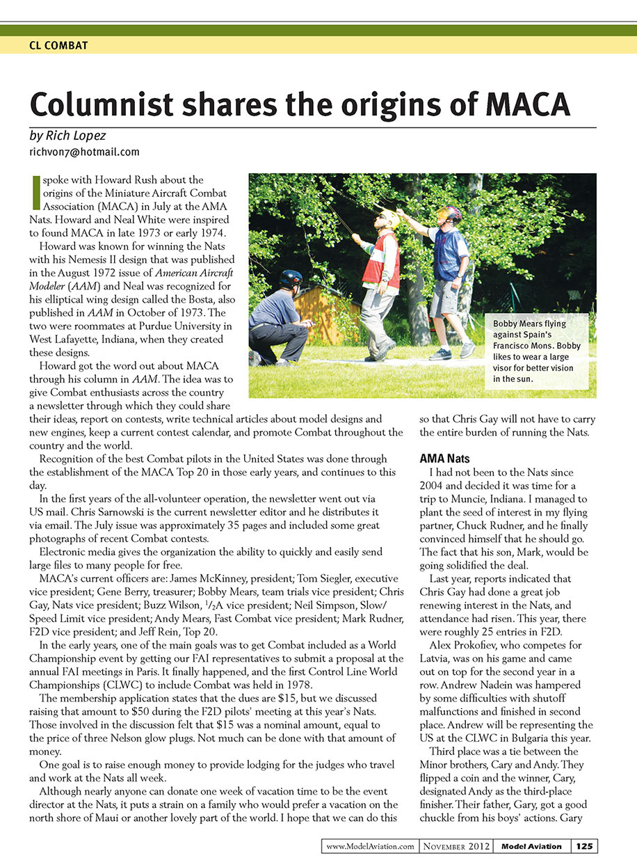 new engines, keep a current contest calendar, and promote Combat throughout the