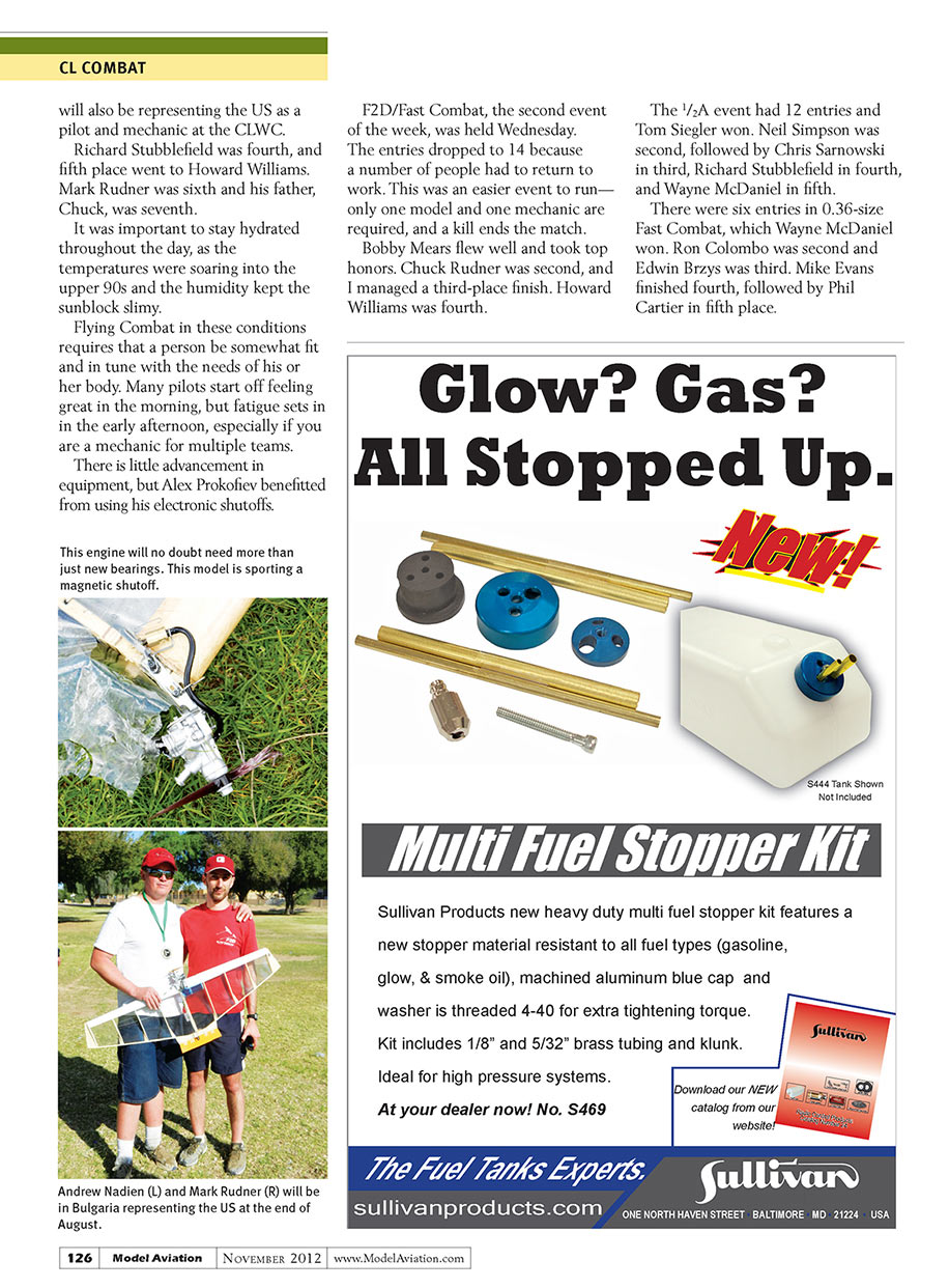 There were six entries in 0.36-size Fast Combat, which Wayne McDaniel won. Ron Colombo was second and Edwin Brzys was third. Mike Evans finished fourth, followed by Phil Cartier in fifth place.